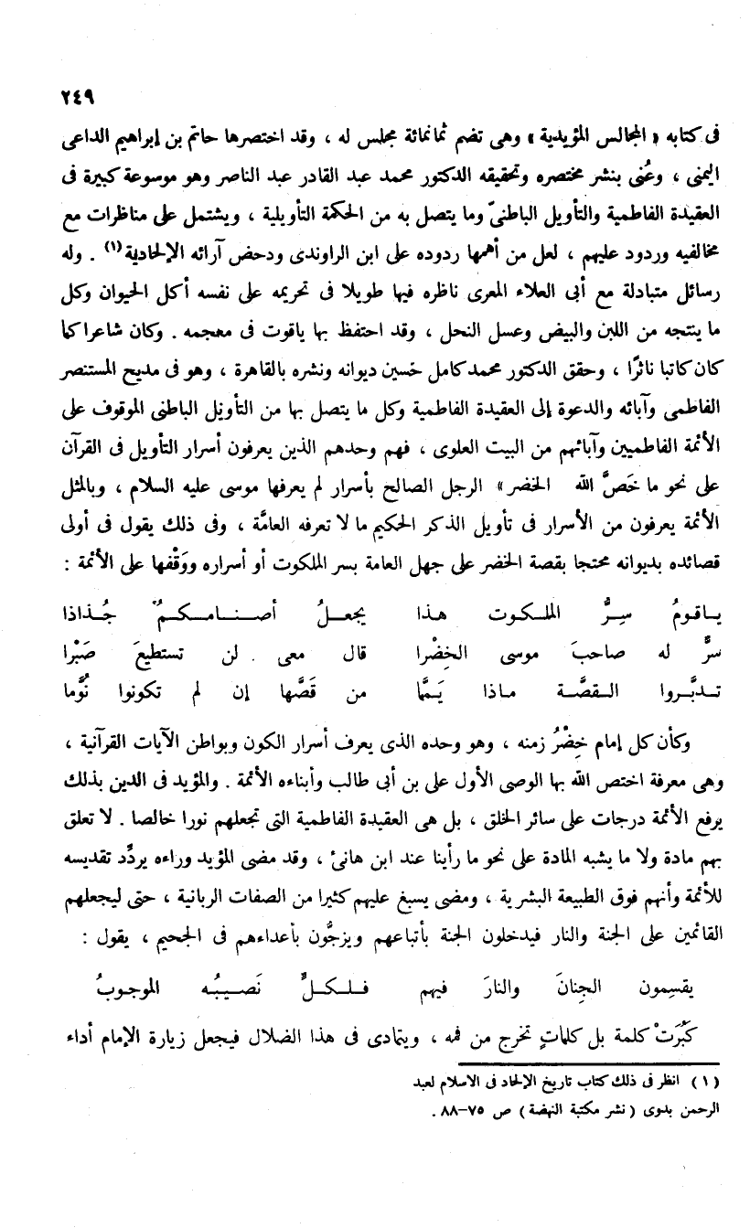 (¬1) انظر فى ذلك كتاب تاريخ الإلحاد فى الاسلام لعبد الرحمن بدوى (نشر مكتبة النهضة) ص 75 - 88.
