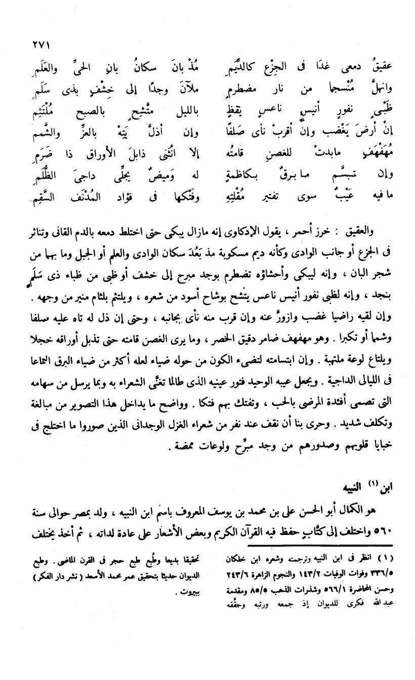 (¬1) انظر فى ابن النبيه وترجمته وشعره ابن خلكان 5/ 336 وفوات الوفيات 2/ 143 والنجوم الزاهرة 6/ 243 وحسن المحاضرة 1/ 566 وشذرات الذهب 5/ 85 ومقدمة عبد الله فكرى للديوان إذ جمعه ورتبه وحقّقه تحقيقا بديعا وطبع طبع حجر فى القرن الماضى. وطبع الديوان حديثا بتحقيق عمر محمد الأسعد (نشر دار الفكر) ببيروت.