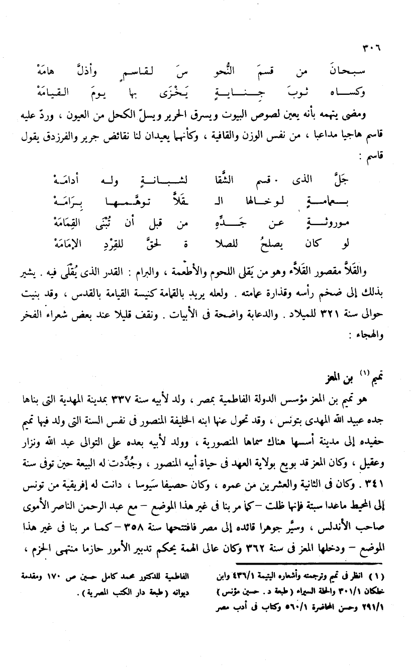 (¬1) انظر فى تميم وترجمته وأشعاره اليتيمة 1/ 436 وابن خلكان 1/ 301 والحلة السيراء (طبعة د. حسين مؤنس) 1/ 291 وحسن المحاضرة 1/ 560 وكتاب فى أدب مصر الفاطمية للدكتور محمد كامل حسين ص 170 ومقدمة ديوانه (طبعة دار الكتب المصرية).