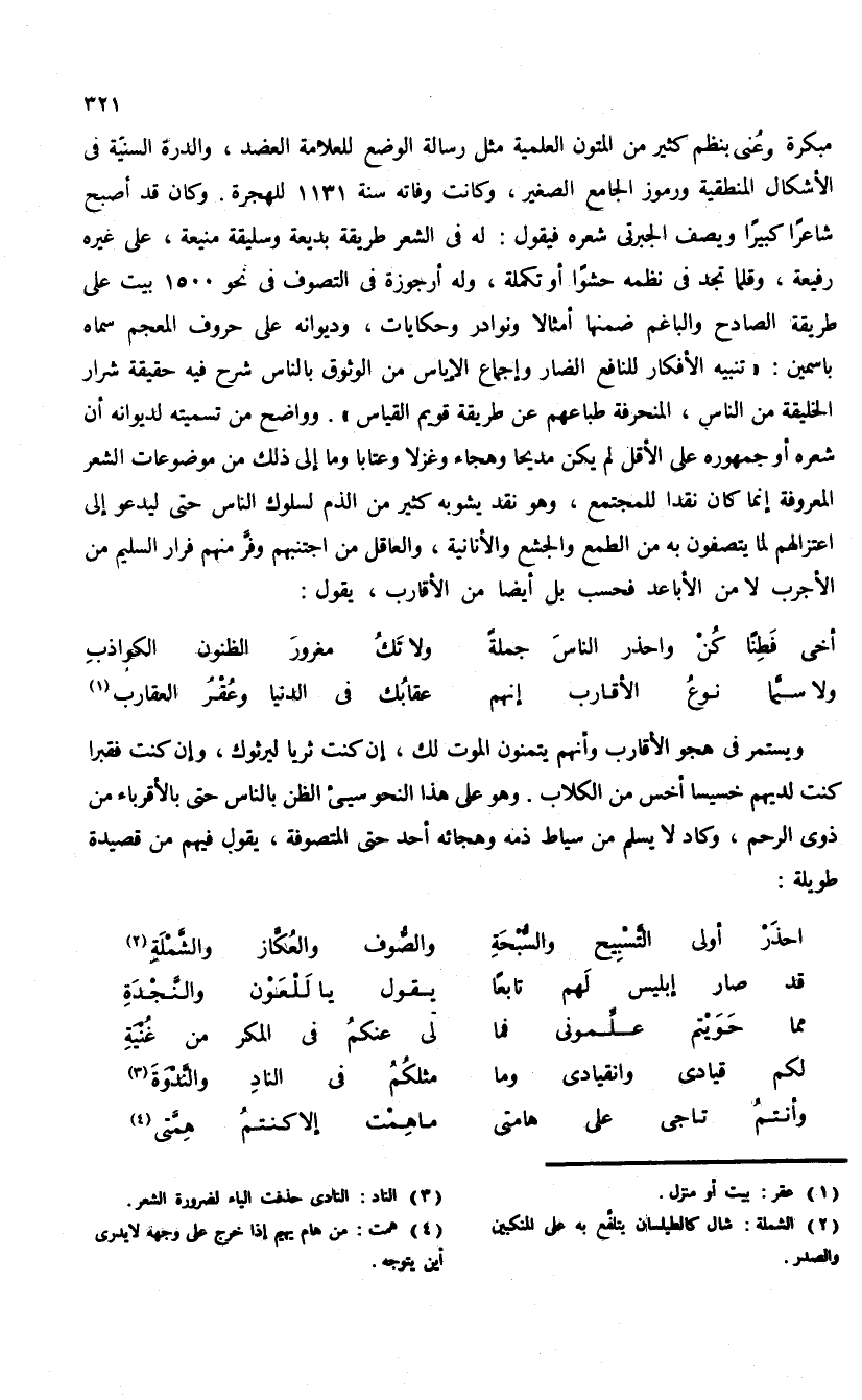 ويستمر فى هجو الأقارب وأنهم يتمنون الموت لك، إن كنت ثريا ليرثوك، وإن كنت فقيرا كنت لديهم خسيسا أخس من الكلاب. وهو على هذا النحو سيئ الظن بالناس حتى بالأقرباء من ذوى الرحم، وكاد لا يسلم من سياط ذمه وهجائه أحد حتى المتصوفة، يقول فيهم من قصيدة طويلة: