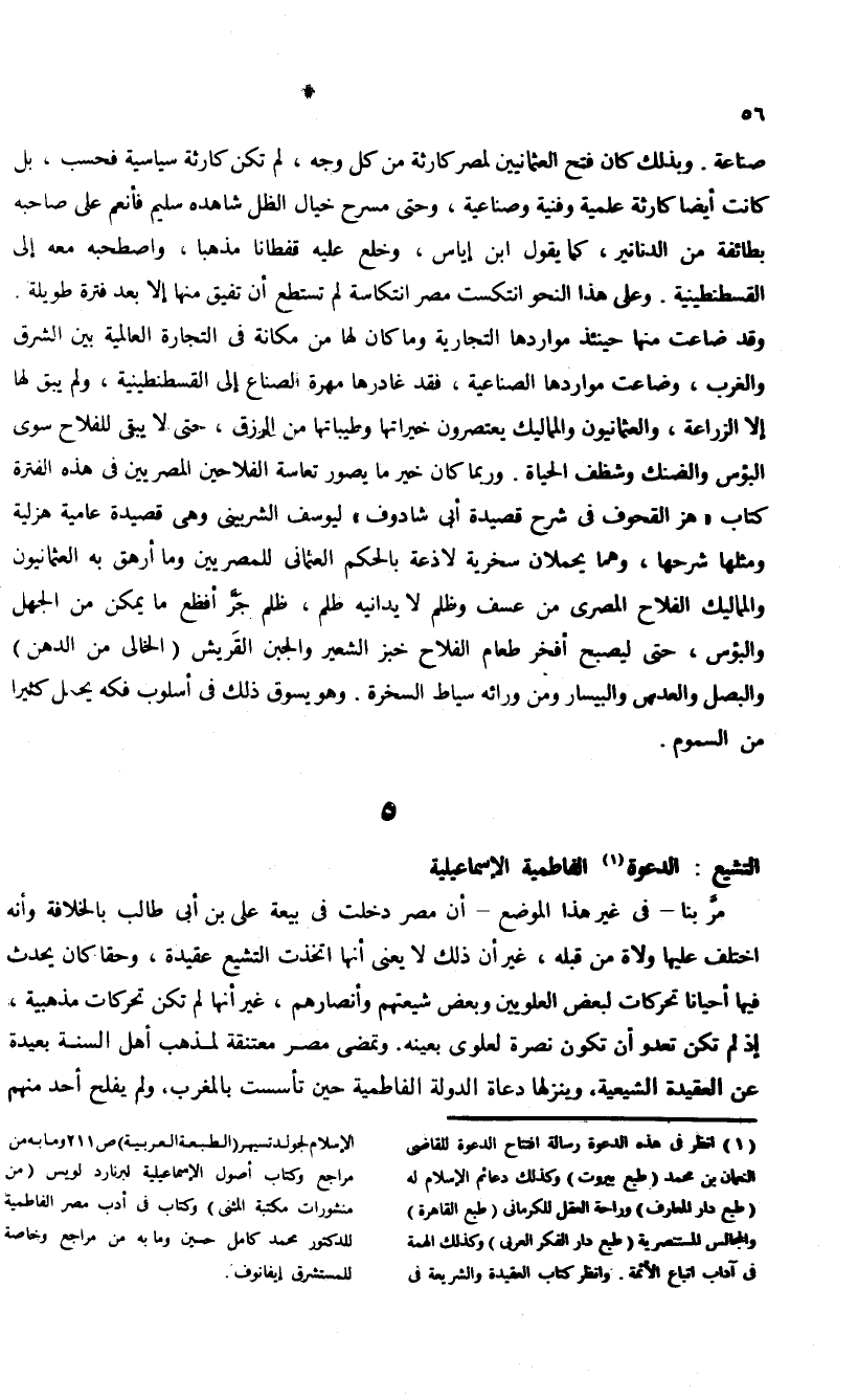 (¬1) انظر فى هذه الدعوة رسالة افتتاح الدعوة للقاضى النعمان بن محمد (طبع بيروت) وكذلك دعائم الإسلام له (طبع دار المعارف) وراحة العقل للكرمانى (طبع القاهرة) والمجالس المستنصرية (طبع دار الفكر العربى) وكذلك الهمة فى آداب اتباع الأئمة. وانظر كتاب العقيدة والشريعة فى الإسلام لجولد تسيهر (الطبعة العربية) ص 211 وما به من مراجع وكتاب أصول الإسماعيلية لبرنارد لويس (من منشورات مكتبة المثنى) وكتاب فى أدب مصر الفاطمية للدكتور محمد كامل حسين وما به من مراجع وخاصة للمستشرق إيفانوف.
