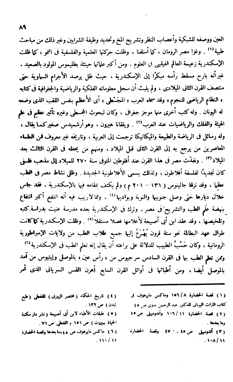 (¬6)؟ ؟ ؟ ماكس ما يرهوف ص 45 وما بعدها وقصة الحضارة 11/ 110.