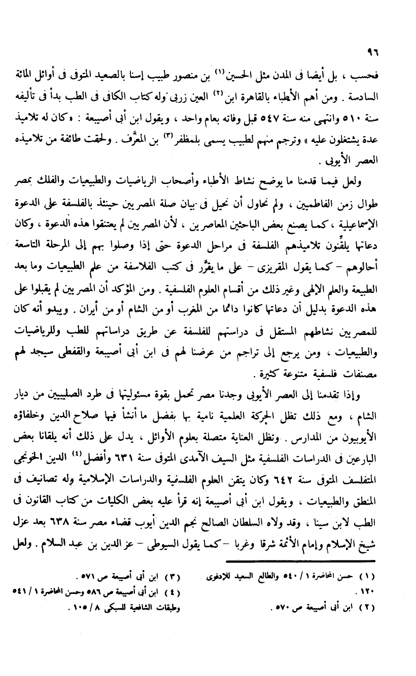 (¬4) ابن أبى أصيبعة ص 586 وحسن المحاضرة 1/ 541 وطبقات الشافعية للسبكى 8/ 105.