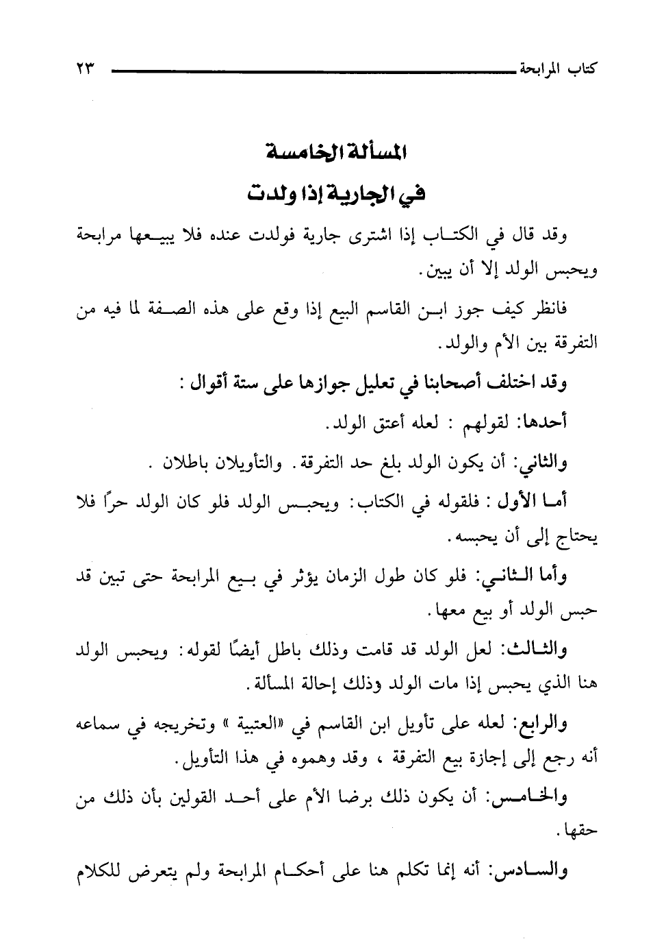 المسألة الخامسة في الجارية إذا ولدت