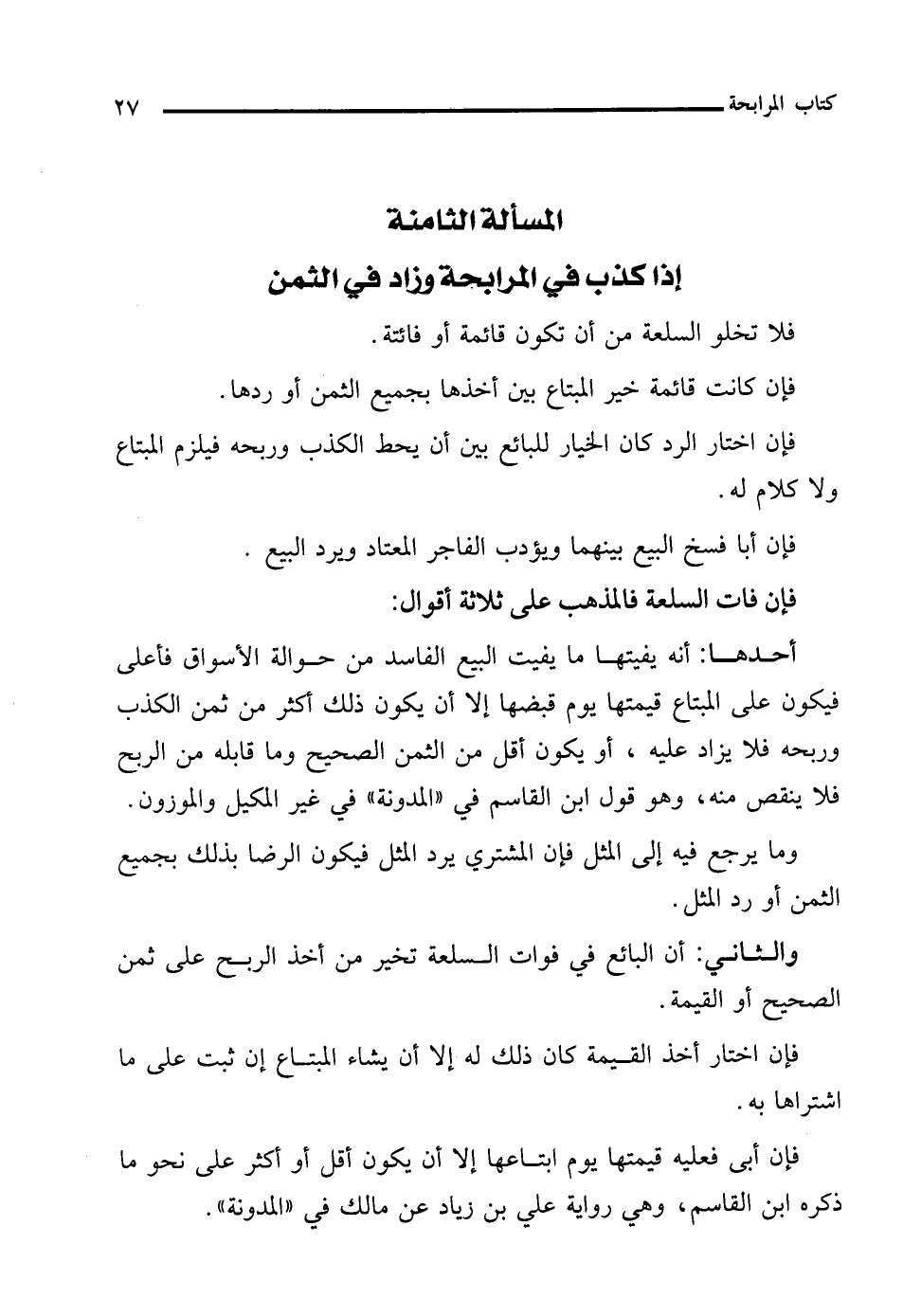 المسألة الثامنة إذا كذب في المرابحة وزاد في الثمن
