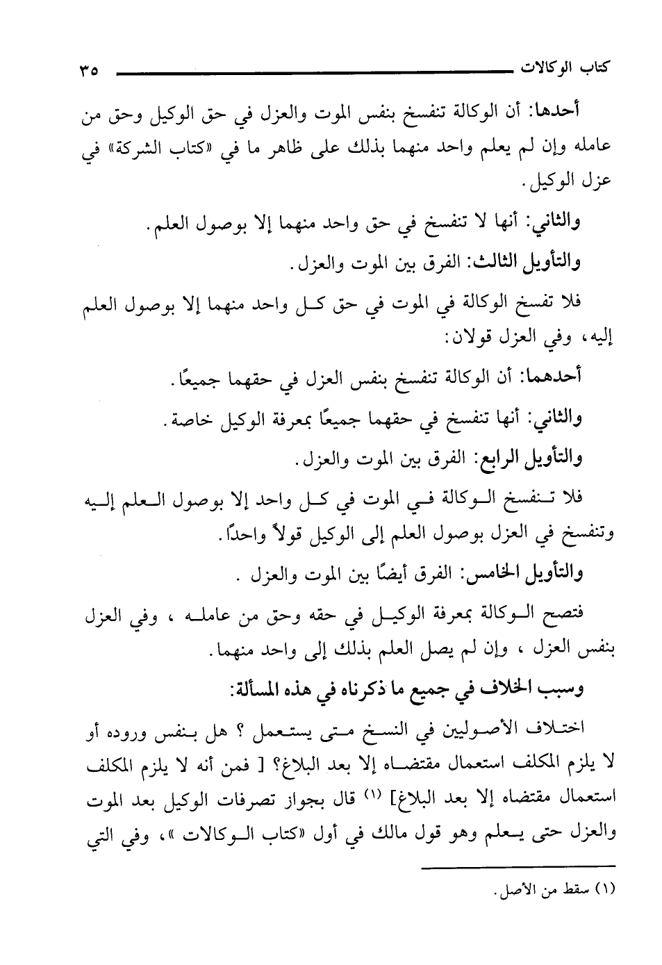 اختلاف الأصوليين في النسخ متى يستعمل؟ هل بنفس وروده أو لا يلزم المكلف استعمال مقتضاه إلا بعد البلاغ؟ [فمن أنه لا يلزم المكلف استعمال مقتضاه إلا بعد البلاغ] (¬1) قال بجواز تصرفات الوكيل بعد الموت والعزل حتى يعلم وهو قول مالك في أول "كتاب الوكالات"، وفي التي