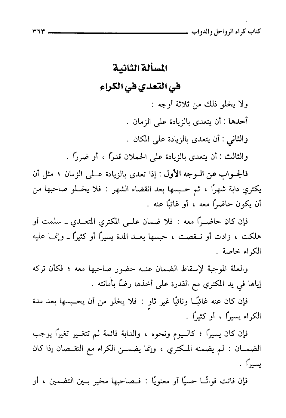 المسألة الثانية في التعدي في الكراء