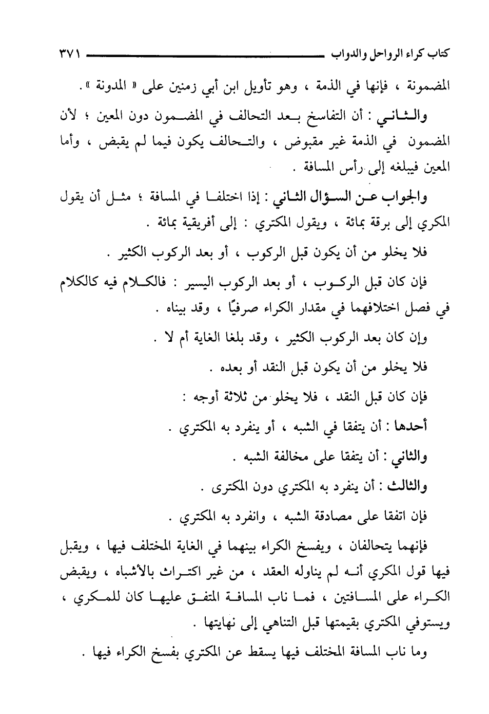 والجواب عن السؤال الثاني: إذا اختلفا في المسافة؛ مثل أن يقول المكري إلى برقة بمائة، ويقول المكتري: إلى أفريقية بمائة.