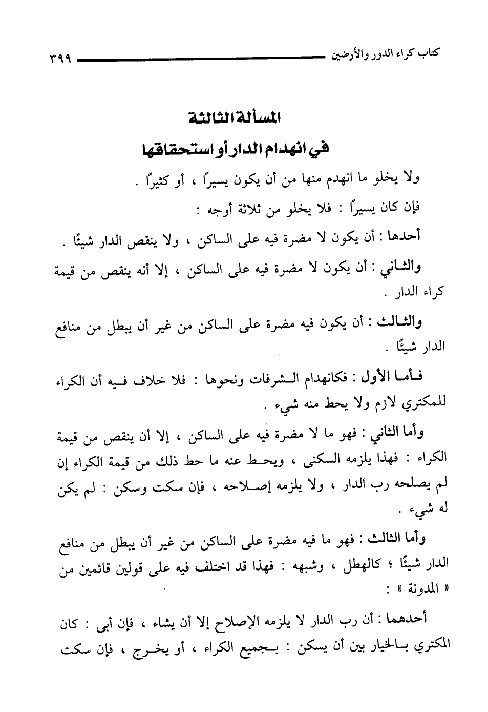 المسألة الثالثة في انهدام الدار أو استحقاقها