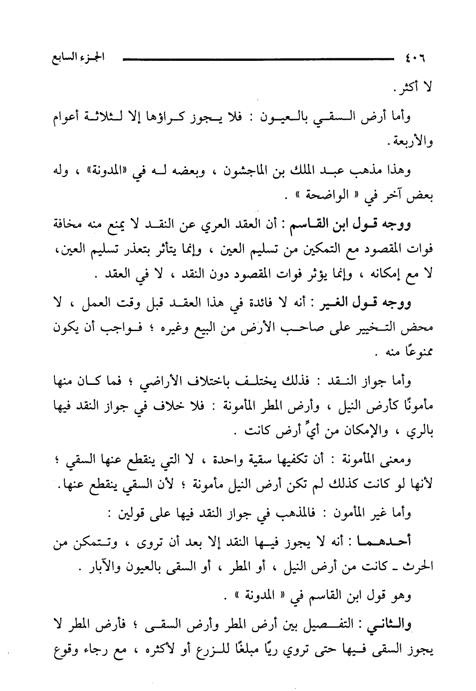 أحدهما: أنه لا يجوز فيها النقد إلا بعد أن تروى، وتتمكن من الحرث -كانت من أرض النيل، أو المطر، أو السقى بالعيون والآبار.