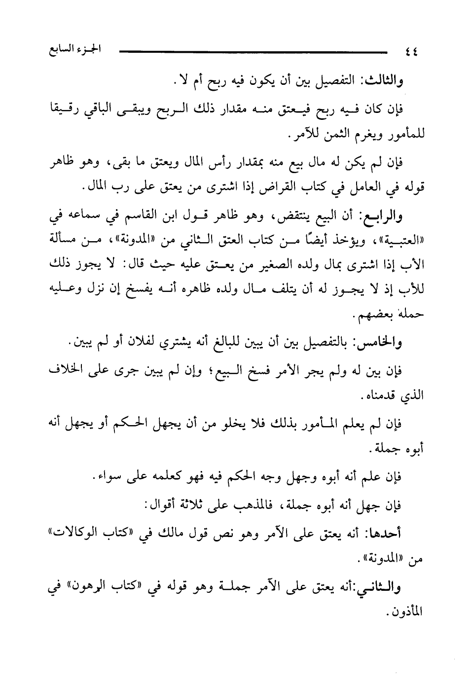 كتاب مناهج التحصيل ونتائج لطائف التأويل في شرح المدونة وحل مشكلاتها (اسم الجزء: 7)
