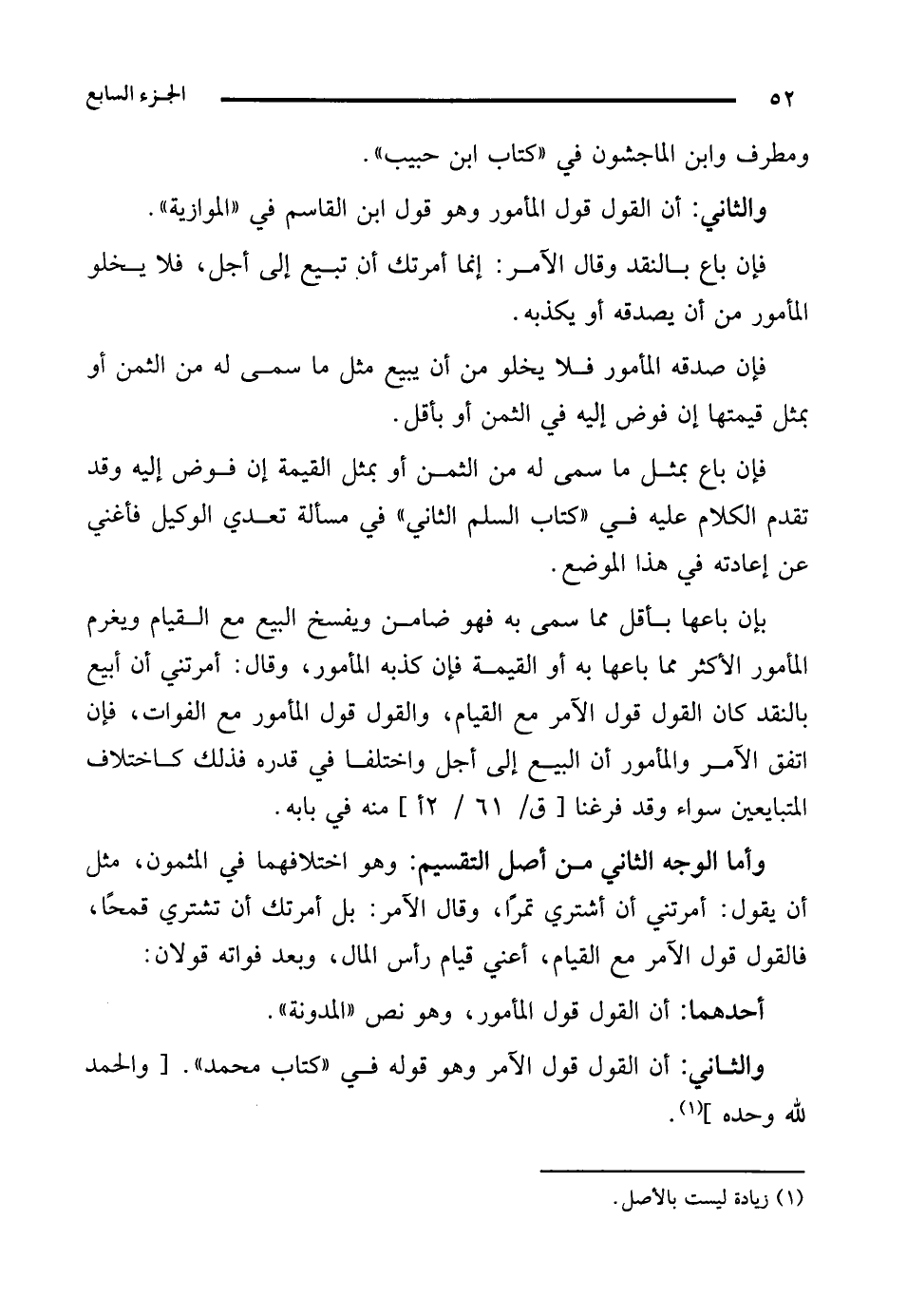 والثاني: أن القول قول المأمور وهو قول ابن القاسم في "الموازية".