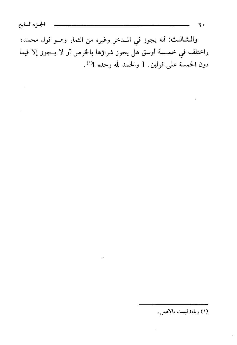 والثالث: أنه يجوز في المدخر وغيره من الثمار وهو قول محمَّد، واختلف في خمسة أوسق هل يجوز شراؤها بالخرص أو لا يجوز إلا فيما دون الخمسة على قولين. [والحمد لله وحده] (¬1).