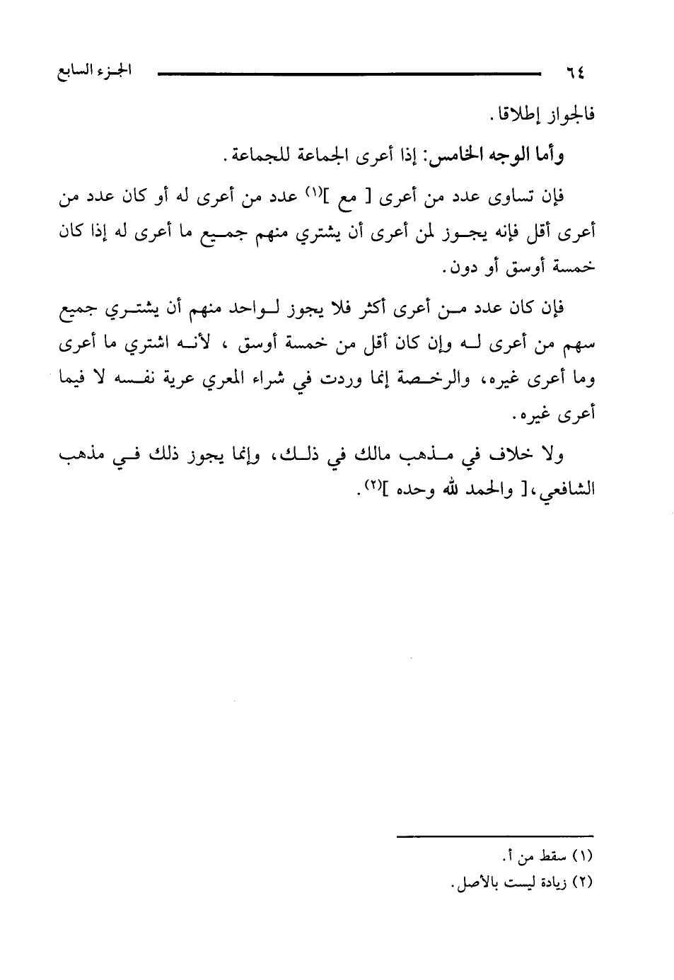 فإن كان عدد من أعرى أكثر فلا يجوز لواحد منهم أن يشتري جميع سهم من أعرى له وإن كان أقل من خمسة أوسق، لأنه اشترى ما أعرى وما أعرى غيره، والرخصة إنما وردت في شراء المعري عرية نفسه لا فيما أعرى غيره.