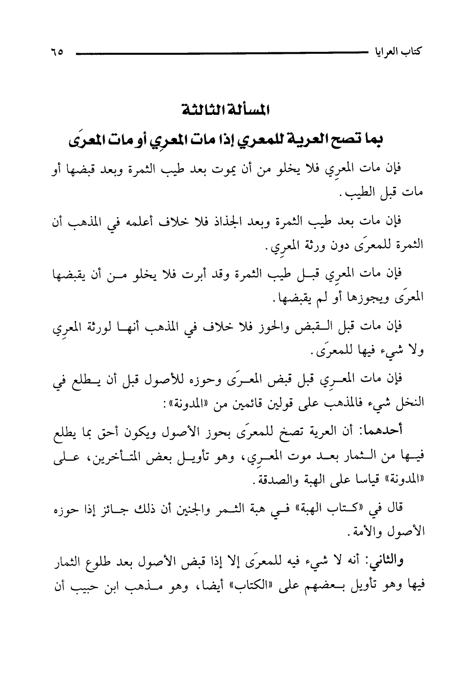 المسألة الثالثة بما تصح العرية للمعري إذا مات المعرِي أو مات المعرَى