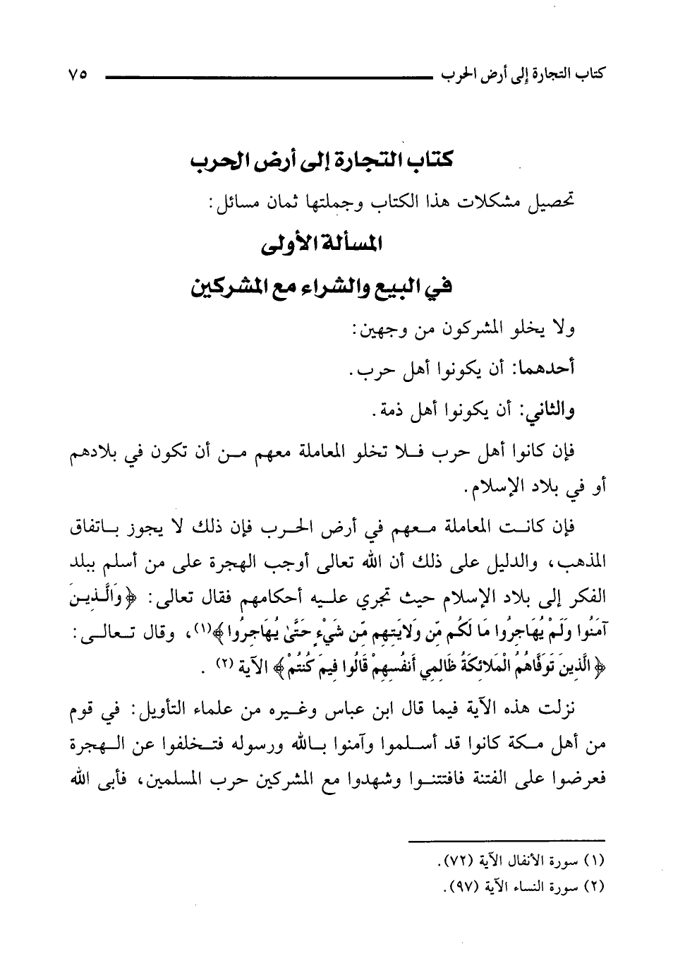 المسألة الأولى في البيع والشراء مع المشركين