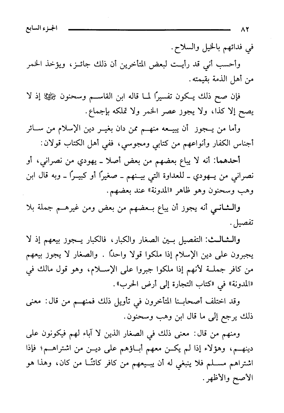 وأما من يجوز أن يبيعه منهم ممن دان بغير دين الإِسلام من سائر أجناس الكفار وأنواعهم من كتابي ومجوسي، ففي أهل الكتاب قولان: