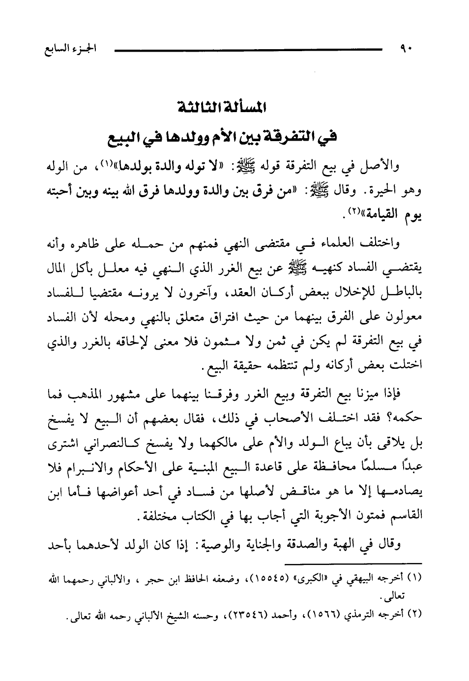 المسألة الثالثة في التفرقة بين الأم وولدها في البيع