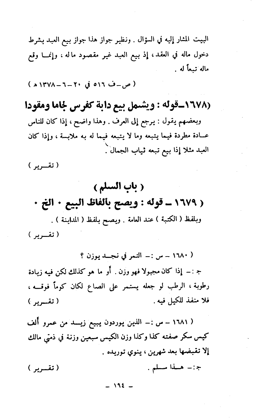 (1678 - قوله: ويشمل بيع دابة كفرس لجاما ومقودا)