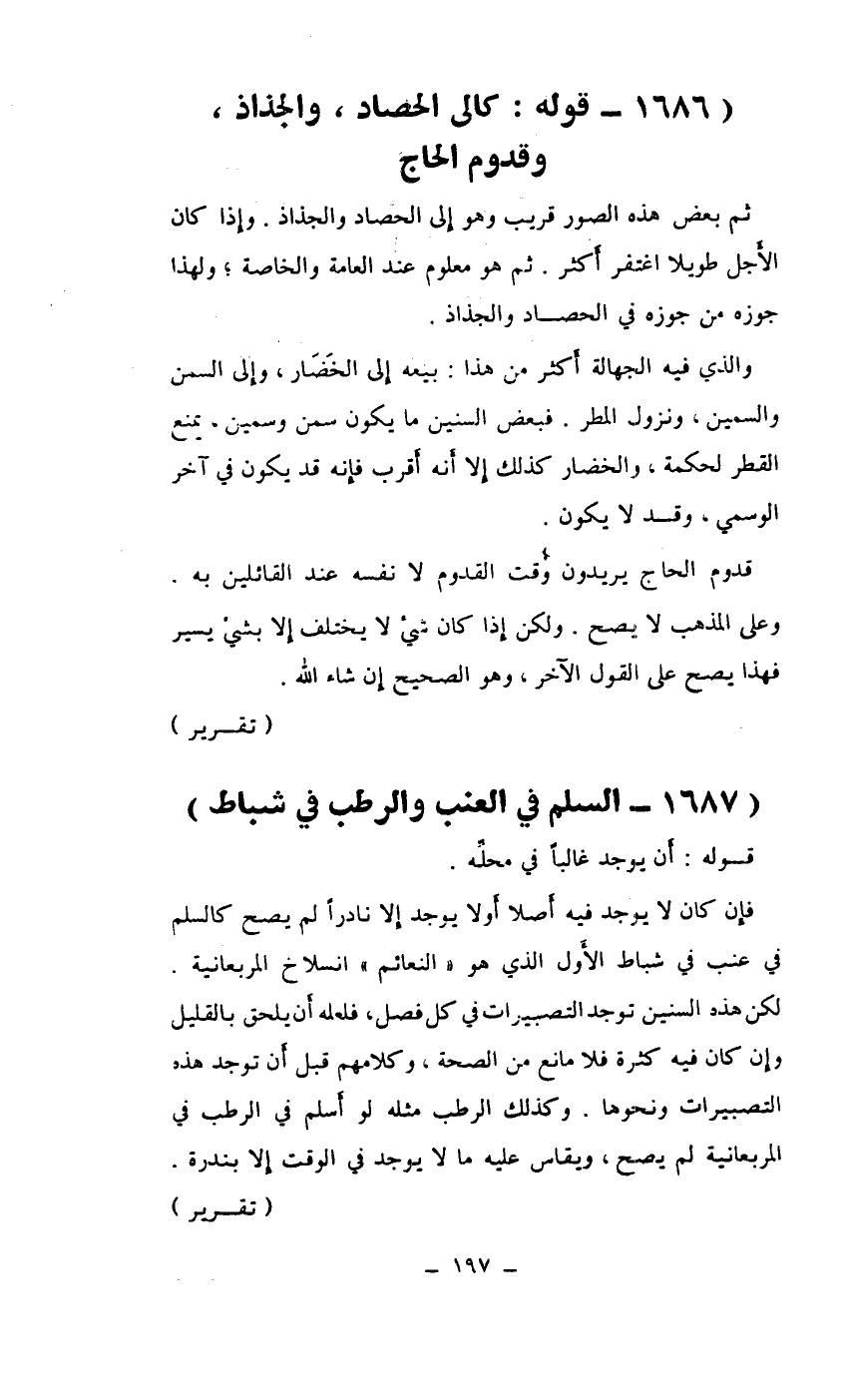 (1686 - قوله: كالى الحصاد، والجذاذ، وقدوم الحاج)