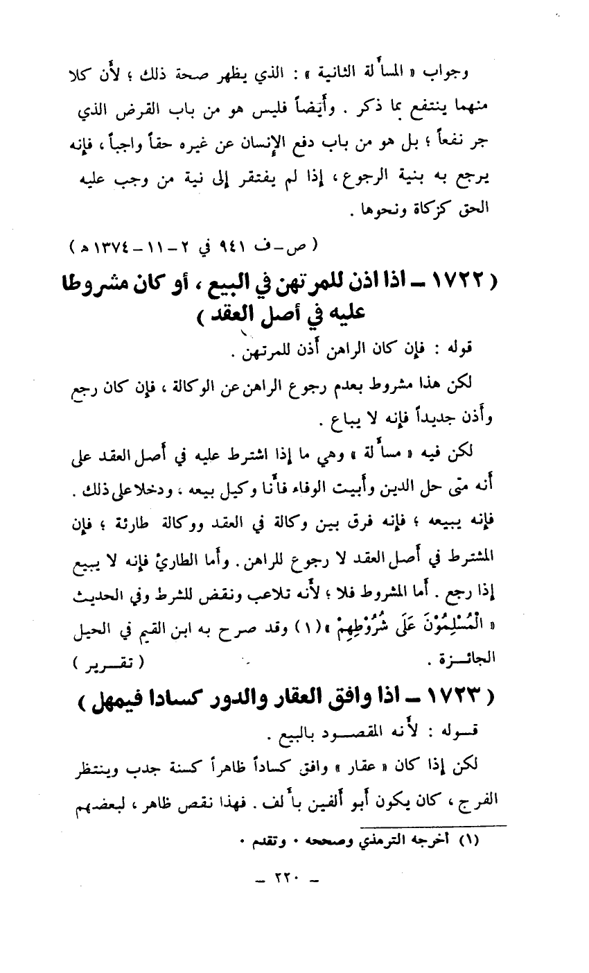 (1722 - إذا أذن للمرتهن في البيع، أو كان مشروطا عليه في أصل العقد)