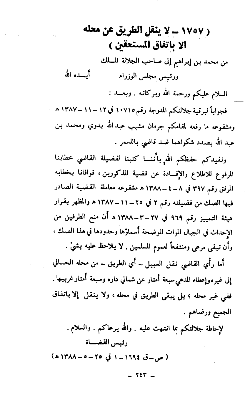 (1757 - لا ينقل الطريق عن محله إلا باتفاق المستحقين)