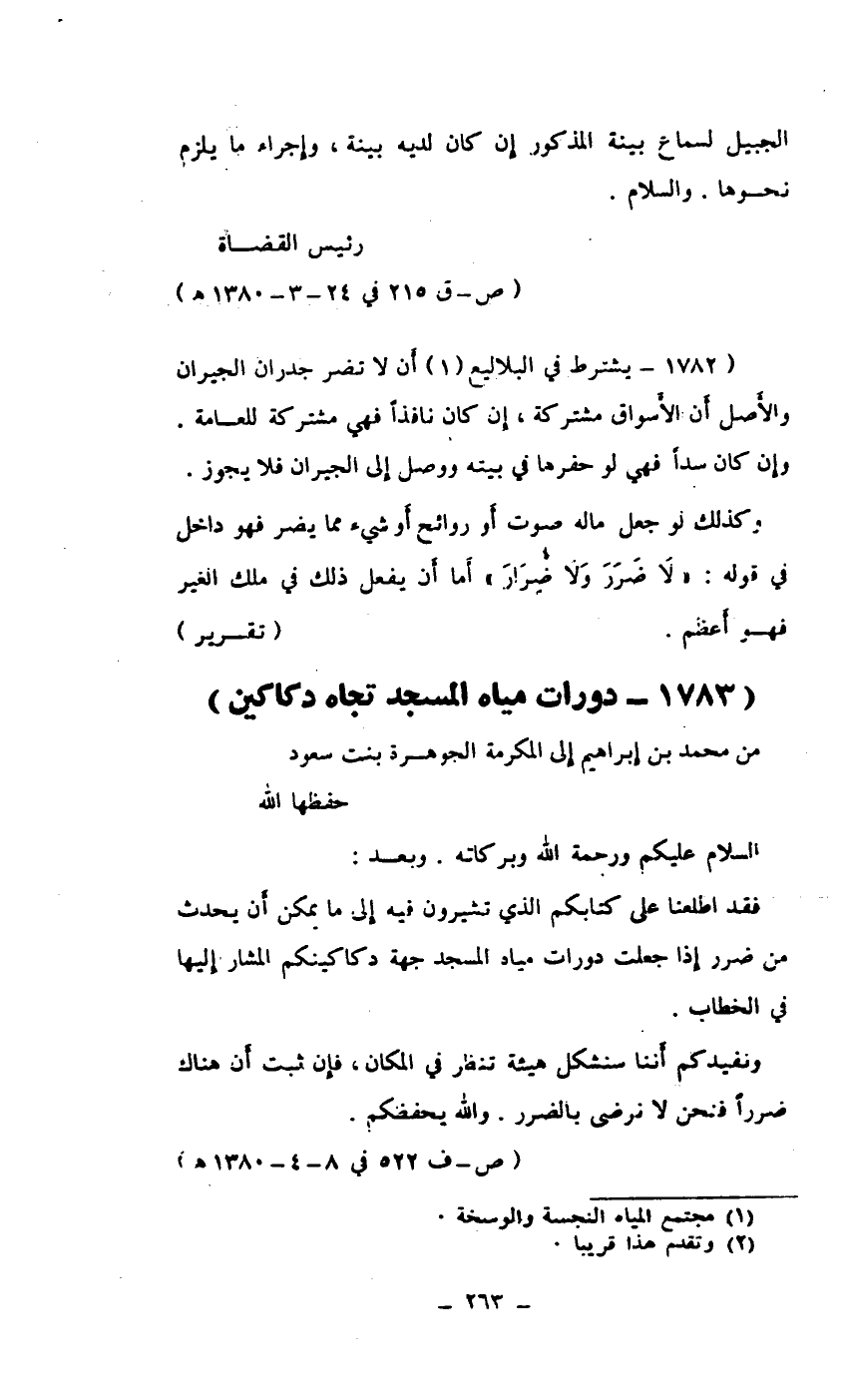 فقد اطلعنا على كتابكم الذي تشيرون فيه إلى ما يمكن أن يحدث من ضرر إذا جعلت دورات مياه المساجد دجهة دكاكينكم المشار إليها في الخطاب.