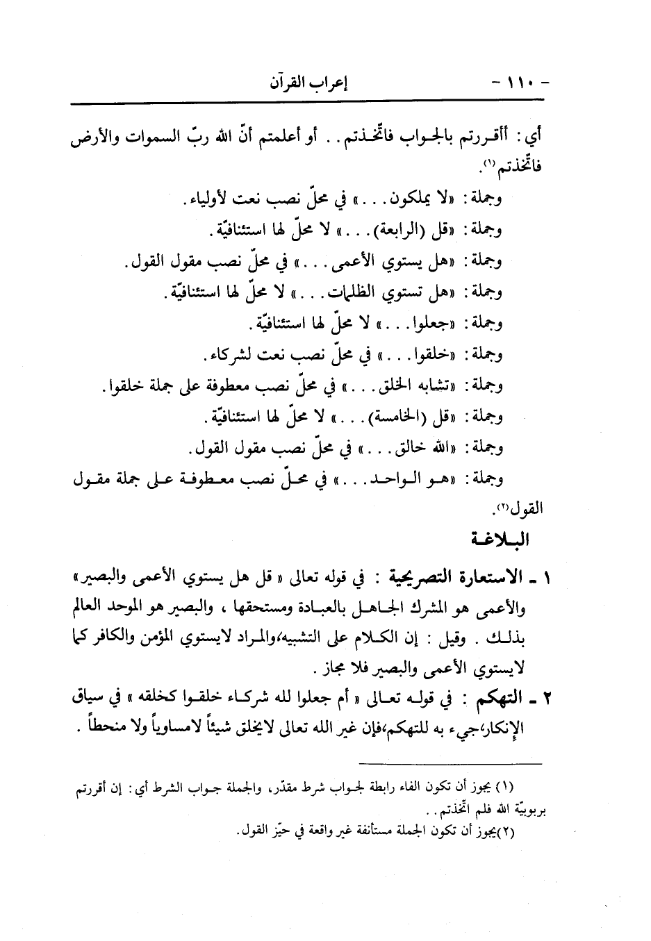 1- للمستثنى ب «إلّا» بحث ضاف قتله النحاة بحثا وتوضيحا، ولا يعنينا في هذه الآية سوى «الاستثناء المفرغ» على حد تعبير بعضهم «واعراب المستثنى بإلّا على حسب العوامل» على حد تعبير الآخرين وسواء راق لنا هذا التعريف أو ذاك فلا بد للمستثنى من شرطين حتى يعرب بحسب العوامل وهما: أولا أن يكون مفرغا من ذكر المستثنى منه.