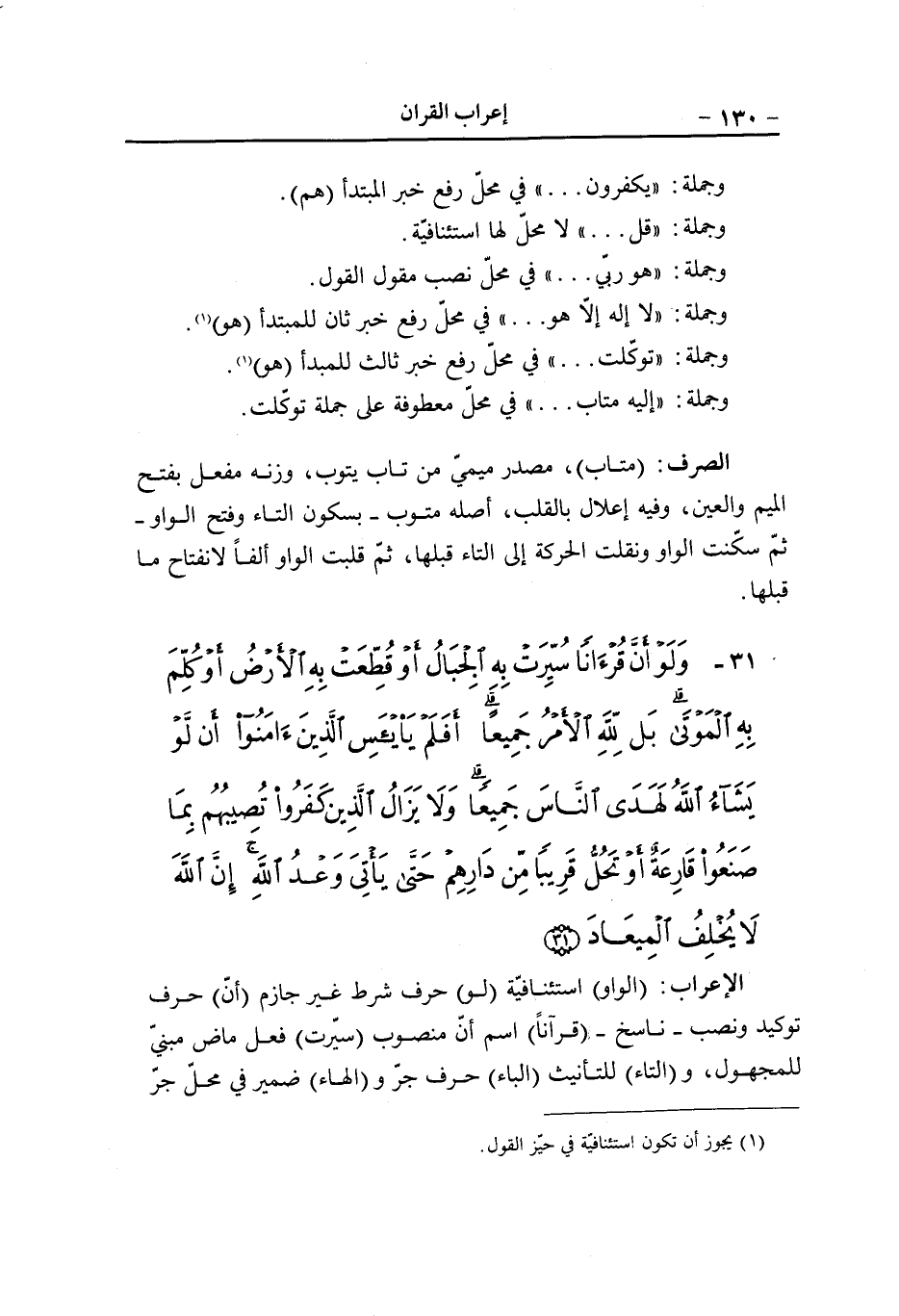 (3) يجوز أن يكون الاسم ضميرا مستترا وجوبا يعود على (إعراض) المتنازع عليه مع فعل كبر، ولكن الإعراب أعلاه ألصق بالأسلوب القرآني، ولأن الإتيان ب (كان) يبقي الشرط على مضية. [.....]