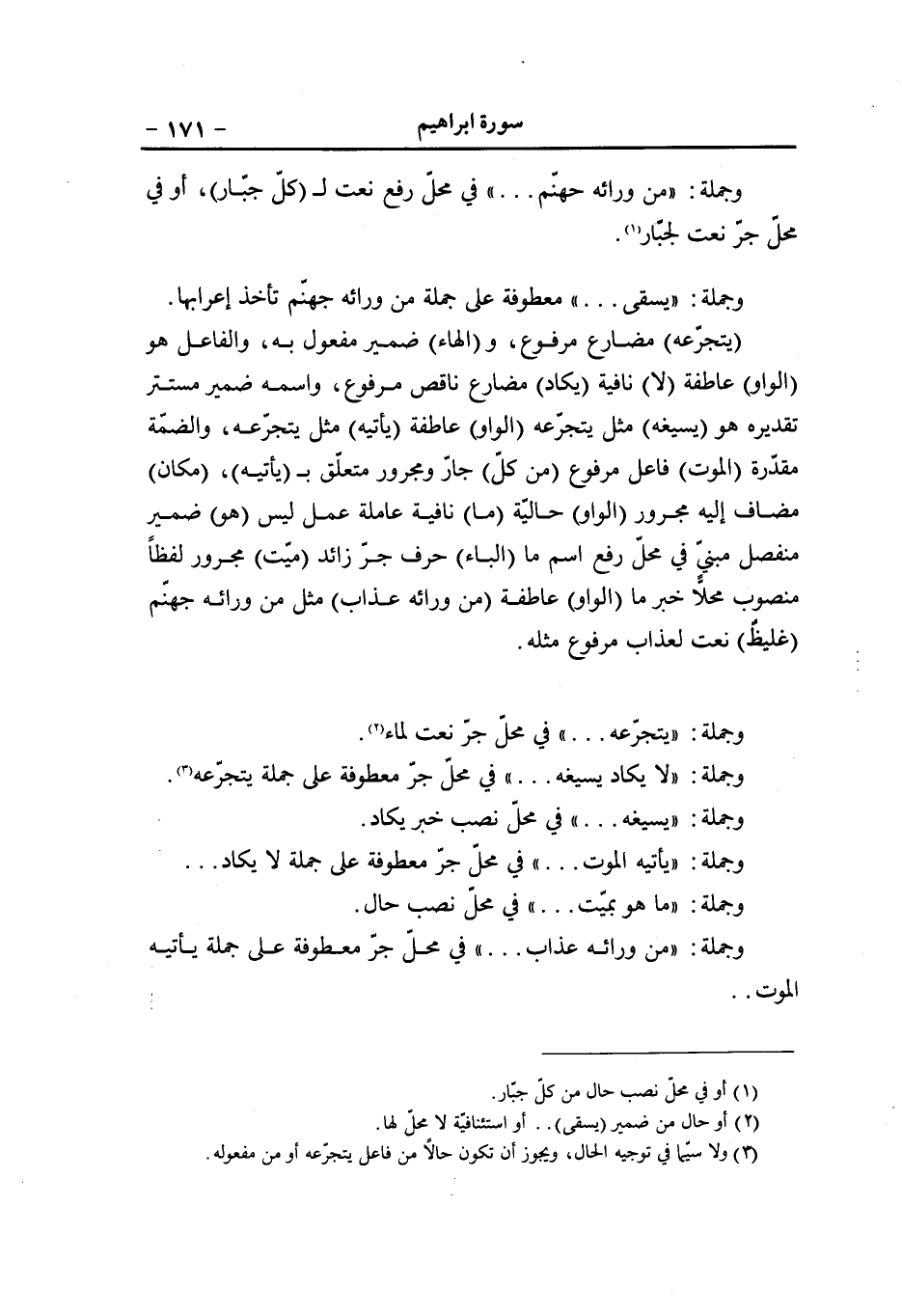 (1) يحتمل أن تكون خبرا لمبتدأ محذوف تقديره هو، والجملة الاسميّة حال من الضمير المستكنّ في (القاهر) ... ويجوز أن تكون مستأنفة لا محلّ لها.