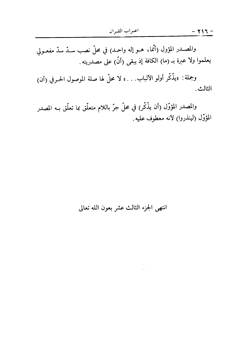 (الواو) استئنافية (ما) نافية (قدروا) فعل ماض مبني على الضم ... والواو فاعل (الله) لفظ الجلالة مفعول به منصوب (حق) مفعول مطلق نائب عن المصدر، أضيف إلى المصدر، منصوب (قدر) مضاف إليه و (الهاء) ضمير مضاف إليه (إذ) ظرف للزمن الماضي مبني في محلّ نصب متعلق ب (قدروا) ، (قالوا) مثل قدروا (ما) مثل الأول (أنزل) فعل ماض (الله) لفظ الجلالة فاعل مرفوع (على بشر) جار ومجرور متعلق ب (أنزل) ، (من) حرف جر زائد (شيء) مجرور لفظا منصوب محلا مفعول به (قل) فعل أمر، والفاعل ضمير مستتر تقديره أنت (من) اسم استفهام مبني في محلّ رفع مبتدأ (أنزل) مثل الأول والفاعل هو (الكتاب) مفعول به منصوب (الذي) اسم موصول مبني في محلّ نصب نعت للكتاب (جاء) مثل أنزل (الباء) حرف جر و (الهاء) ضمير في محلّ جر متعلق ب (جاء) ، (موسى) فاعل مرفوع وعلامة الرفع الضمة المقدرة على الألف (نورا) حال منصوبة من الضمير المجرور في (به) ، (هدى) معطوف على (نورا) بالواو منصوب وعلامة النصب الفتحة المقدرة على الألف (للناس) جار ومجرور متعلق بمحذوف نعت لهدى، (تجعلون) مضارع مرفوع ... والواو فاعل (الهاء) ضمير مفعول به (قراطيس) مفعول به ثان منصوب «1» ، (تبدون) مثل تجعلون و (هاء) ضمير مفعول به (الواو) عاطفة (تخفون) مثل تجعلون (كثيرا) مفعول به منصوب (الواو) حالية (علمتم) فعل ماض مبني للمجهول مبني على السكون ...