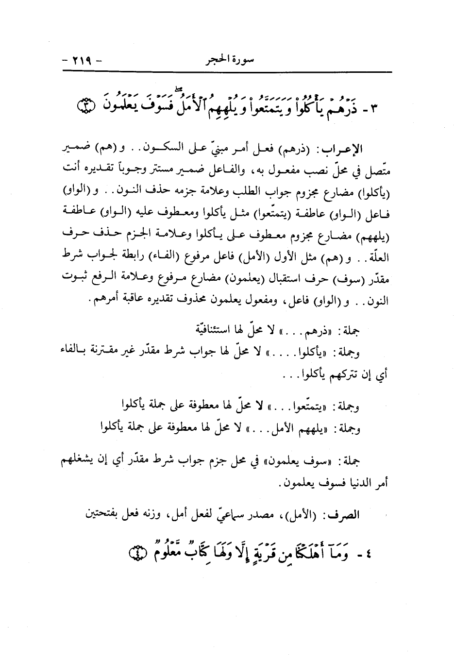 الصلة (يدي) مضاف إليه مجرور وعلامة الجر الياء و (الهاء) ضمير مضاف إليه. (الواو) عاطفة (اللام) لام التعليل (تنذر) مضارع منصوب بأن مضمرة بعد اللام، والفاعل ضمير مستتر تقديره أنت (أم) مفعول به منصوب (القرى) مضاف إليه مجرور وعلامة الجر الكسرة المقدرة على الألف.