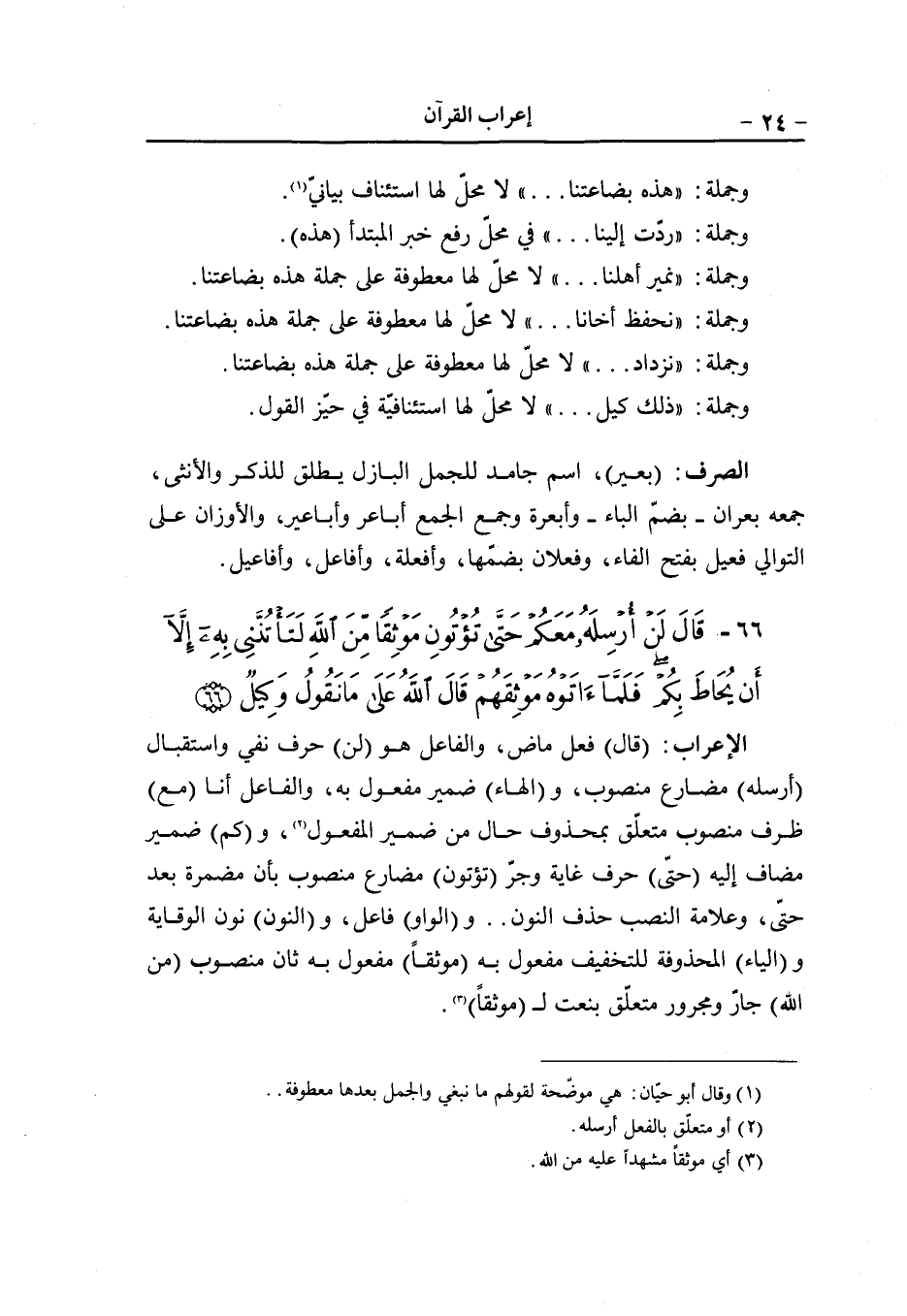 (يأيّها الذين آمنوا لا تقتلوا الصيد) مرّ إعراب نظيرها «1» ، (الواو) واو الحال (أنتم) ضمير في محلّ رفع مبتدأ (حرم) خبر مرفوع (الواو) عاطفة (من قتل) مثل من اعتدى «2» ، و (الهاء) ضمير مفعول به (من) حرف جرّ و (كم) ضمير في محلّ جرّ متعلّق بحال من فاعل قتل (متعمّدا) حال ثانية من فاعل قتل (الفاء) رابطة لجواب الشرط (جزاء) مبتدأ مؤخّر والخبر محذوف أي فعليه جزاء (مثل) نعت لجزاء
