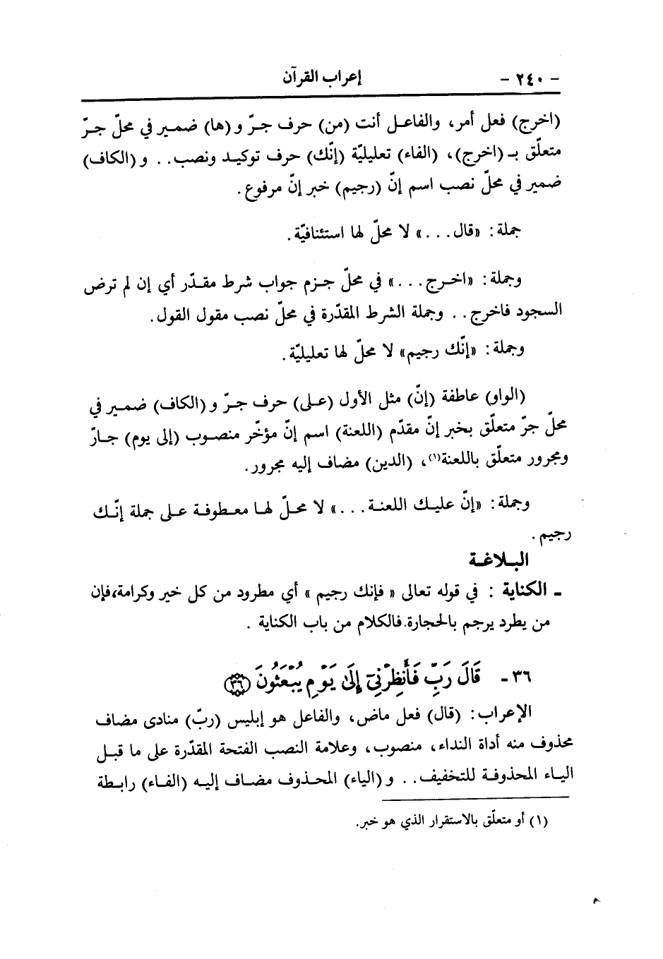 (103) (لا) نافية (تدرك) مضارع مرفوع و (الهاء) ضمير مفعول به (الأبصار) فاعل مرفوع (الواو) حالية (هو) ضمير منفصل مبتدأ (يدرك) مثل تدرك، والفاعل هو (الأبصار) مفعول به منصوب (الواو) عاطفة (هو) مثل السابق (اللطيف) خبر مرفوع (الخبير) خبر ثان مرفوع.