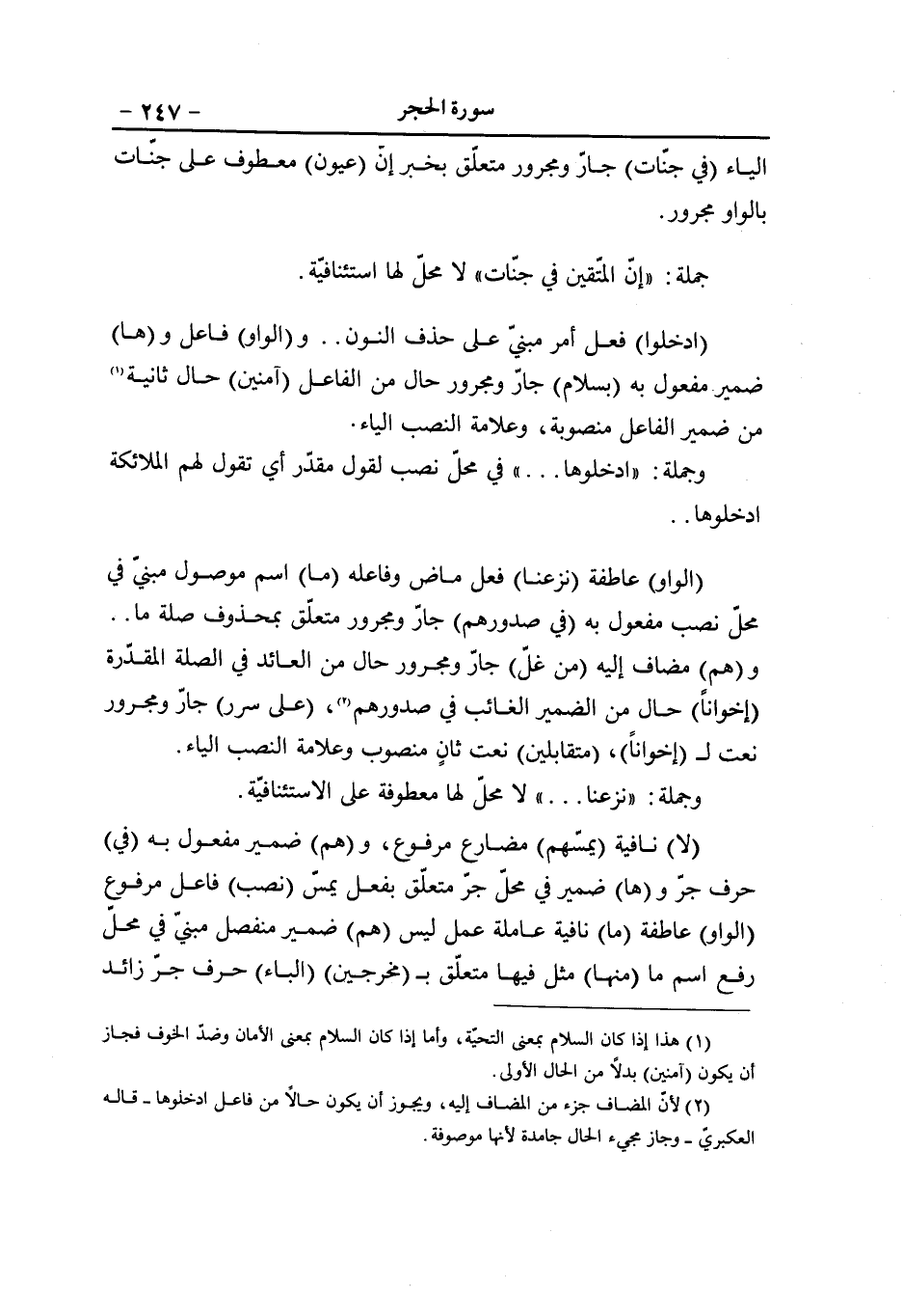 (1) أو مفعول مطلق نائب عن المصدر لأن العدو يلاقي السب في المعنى ... ويجوز أن يكون حالا مؤكدة أي يسبّوا الله معتدين.