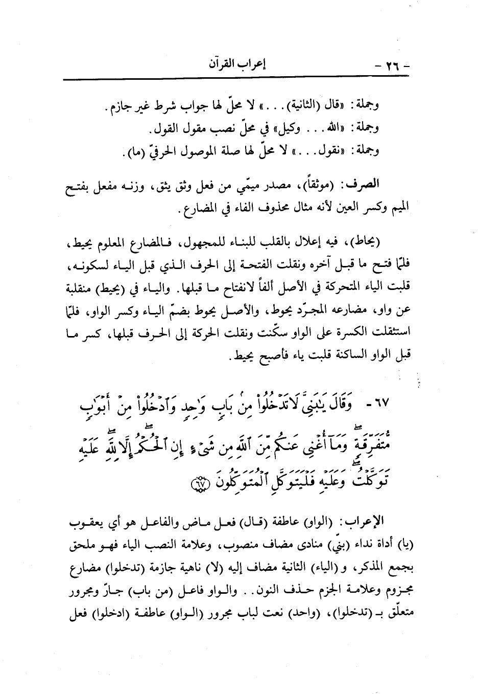 الأمور الثلاثة الواردة أي: وجب ذلك ليذوق وبال أمره «1» ، (عفا) فعل ماض مبني على الفتح المقدّر على الألف (الله) لفظ الجلالة فاعل مرفوع (عن) حرف جرّ (ما) اسم موصول مبني في محلّ جرّ متعلّق ب (عفا) ، (سلف) مثل قتل (الواو) عاطفة (من عاد) مثل من قتل (الفاء) رابطة لجواب الشرط (ينتقم) مثل يحكم (الله) لفظ الجلالة فاعل مرفوع (منه) مثل منكم متعلّق ب (ينتقم) . (الواو) استئنافيّة (الله) لفظ الجلالة مبتدأ مرفوع (عزيز) خبر مرفوع (ذو) خبر ثان مرفوع وعلامة الرفع الواو فهو من الأسماء الخمسة (انتقام) مضاف إليه مجرور.
