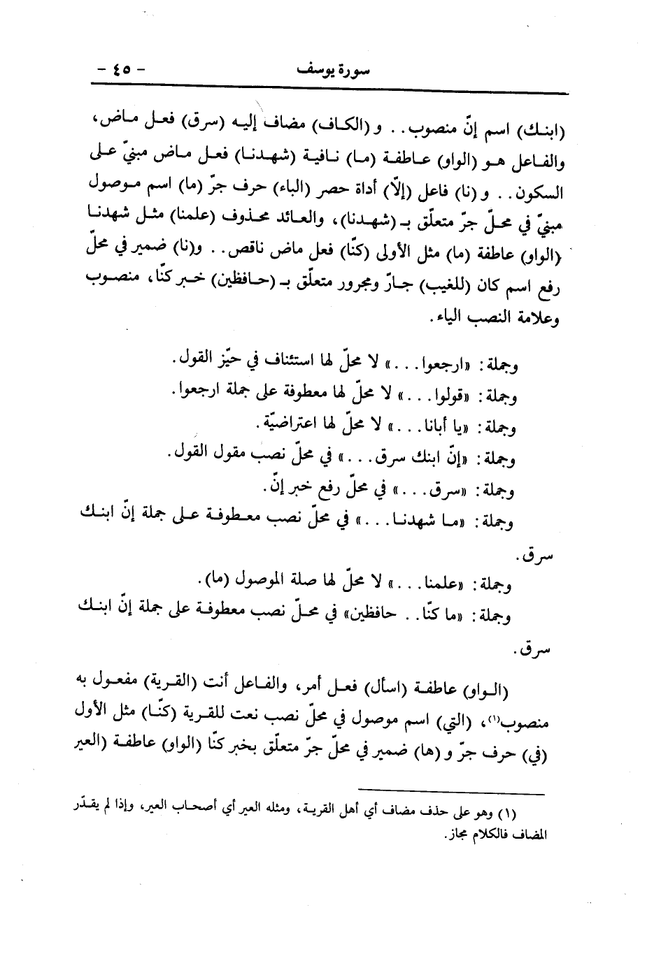 (4) بعض المعربين يجعلونه توكيدا لفاعل الفعل ... وليس بضروري لأن الفاعل المتّصل يصبح منفصلا إن حذف الفعل.