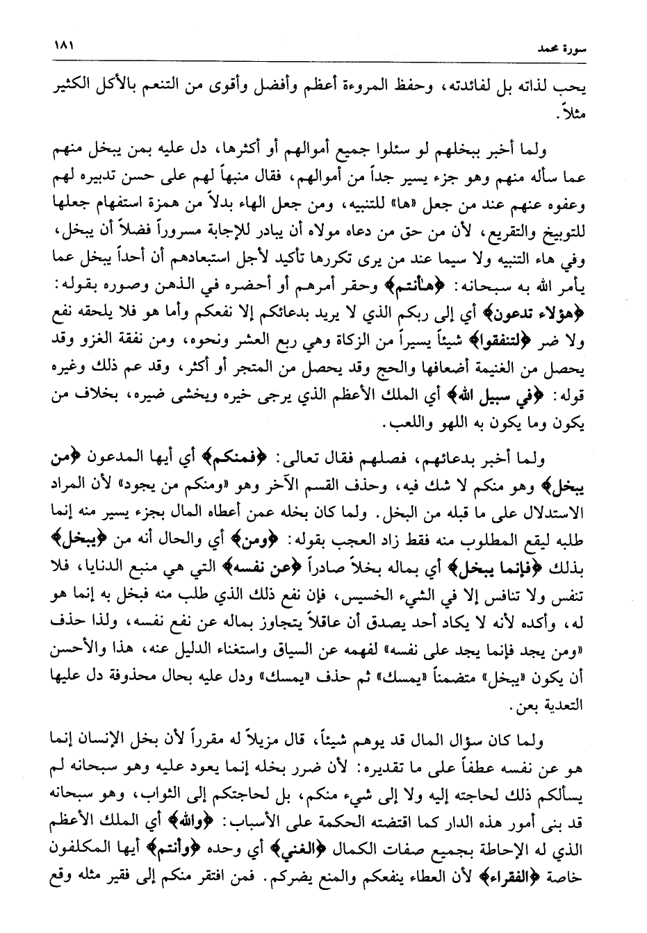 وقال الإمام أبو جعفر بن الزبير : لما انبنت سورة الأحقاف على ما ذكر من مآل من كذب وافترى وكفر وفجر ، وافتتحت السورة بإعراضهم ، ختمت بما قد تكرر من تقريعهم وتوبيخهم ، فقال تعالى : ( ألم يروا أن الله الذي خلق السموات والأرض ولم يعي بخلقهن بقادر على أن يحيي الموتى ) أي لو اعتبروا بالبداءة لتيسر عليهم أمر العودة ، ثم ذكر عرضهم على النار إلى قوله ) فهل يهلك إلا القوم الفاسقون ( فلما ختم بذكر هلاكهم ، اففتح السورة الأخرى بعاجل ذلك اللاحق لهم في دنياهم فقال تعالى : ( فإذا لقيتم الذين كفرا فضرب الرقاب حتى إذا أثخنتموهم فشدوا الوثاق ، فإما منّاً بعد وإما فداء حتى تضع الحرب أوزارها ( الآية بعد ابتداء السورة بقوله ) الذين كفروا وصدوا عن سبيل الله أضل أعمالهم ( فنبه على أن أصل محنتهم إنما هو بما أراده تعالى بهم في سابق علمه ليعلم المؤمنون أن الهدى والضلال بيده ، فنبه على الطريقين بقوله ) أضل أعمالهم ( وقوله في الآخر ) كفر عنهم سيئاتهم وأصلح بالهم ( ثم بين أنه تعالى لو شاء لانتصر منهم ولكن أمر المؤمنين بقتالهم ابتلاء واختباراً ، ثم حض المؤمنين على ما أمرهم به من ذلك فقال : ( إن تنصروا الله ينصركم ( ثم التحمت الآي - انتهى .