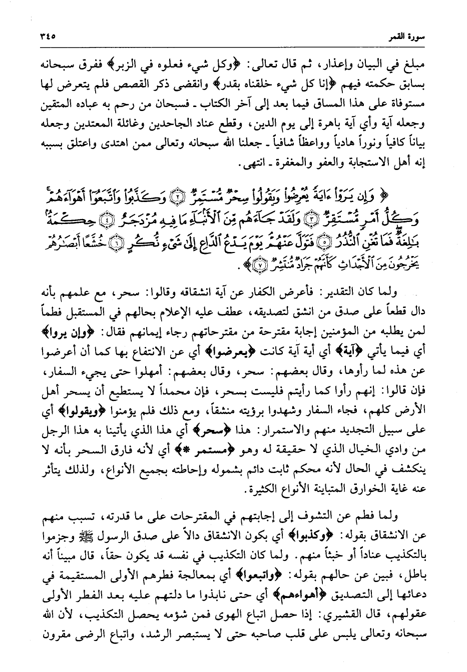 الصنع الدال على وحدانية مبدعه من زينة السماء التي فيها ما توعدون والحراسة من المردة حفظاً لنجوم الكتاب والاهتداء به الدين والدنيا ، وغير ذلك من الحكم التي يعرفها الحكماءء ، فقال تعالى : ( والنجم ) أي هذا الجنس من نجوم السماء أو القرآن لنزوله منجماً مفرقاً وهم يسمون التفريق تنجيماً - أو النبات ، قال البغوي : الشياطين عند الاستراق كما رواه عكرمة عن ابن عباس رضي الله عنهما إن كان المراد السمائي ، فكانت عنده العبادة والاستغفار والدعاء للملك الجبار بالأسحار ، أو صعد فكان به اهتداء المصلي والقارئ والساري ، فإنه يقال : هوى هوياً - بالتفح إذا سقط ، وبالضم - إذا علا وصعد ، أو نزل به الملك للإصعاد وللإبعاد والاطلاع على عجائب المقدور ، أو إذا سقط منبسطاً على الأرض أو ارتفع عنها إن كان المراد النبات ، لما فيه من غيريب الصنعة وجليل التقدير الدال على عام القدرة وكمال العلم والتوحد بالملك والغنى المطلق .