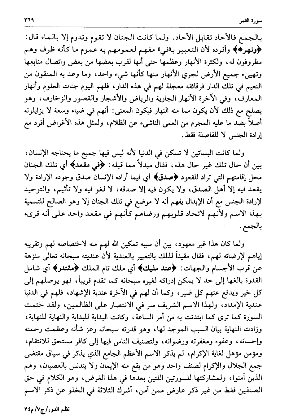 كتاب نظم الدرر فى تناسب الآيات والسور - العلمية (اسم الجزء: 7)