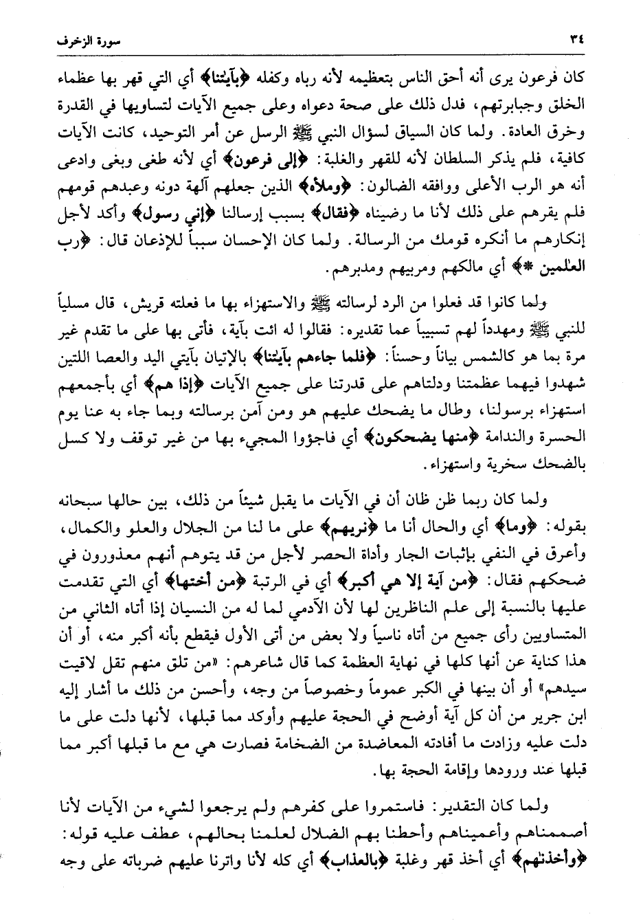 ولما كان ربما ظن ظان أن في الآية ما يقبل شيئاً من ذلك ، بين حالها سبحانه بقوله : ( وما ) أي والحال أنا ما ) نريهم ( على ما لنا من الجلال والعلو والكمال ، وأعرق في النفي بإثبات الجار وأداة الحصر لأجل من قد يتوهم أنهم معذورون في ضحكهم فقال : ( من آية إلا هي أكبر ) أي في الرتبة ) من أختها ) أي التي تقدمت عليها بالنسبة إلى علم الناظرين لها لأن الآدمي لما له من النسيان إذا أتاه الثاني من المتساويين رأى جميع من أتاه ناسياً ولا بعض من أتى الأول فيقطع بأنه أكبر منه ، أو أن هذا كناية عن أنها كلها ي نهاية العظمة كما قال شاعرهم :