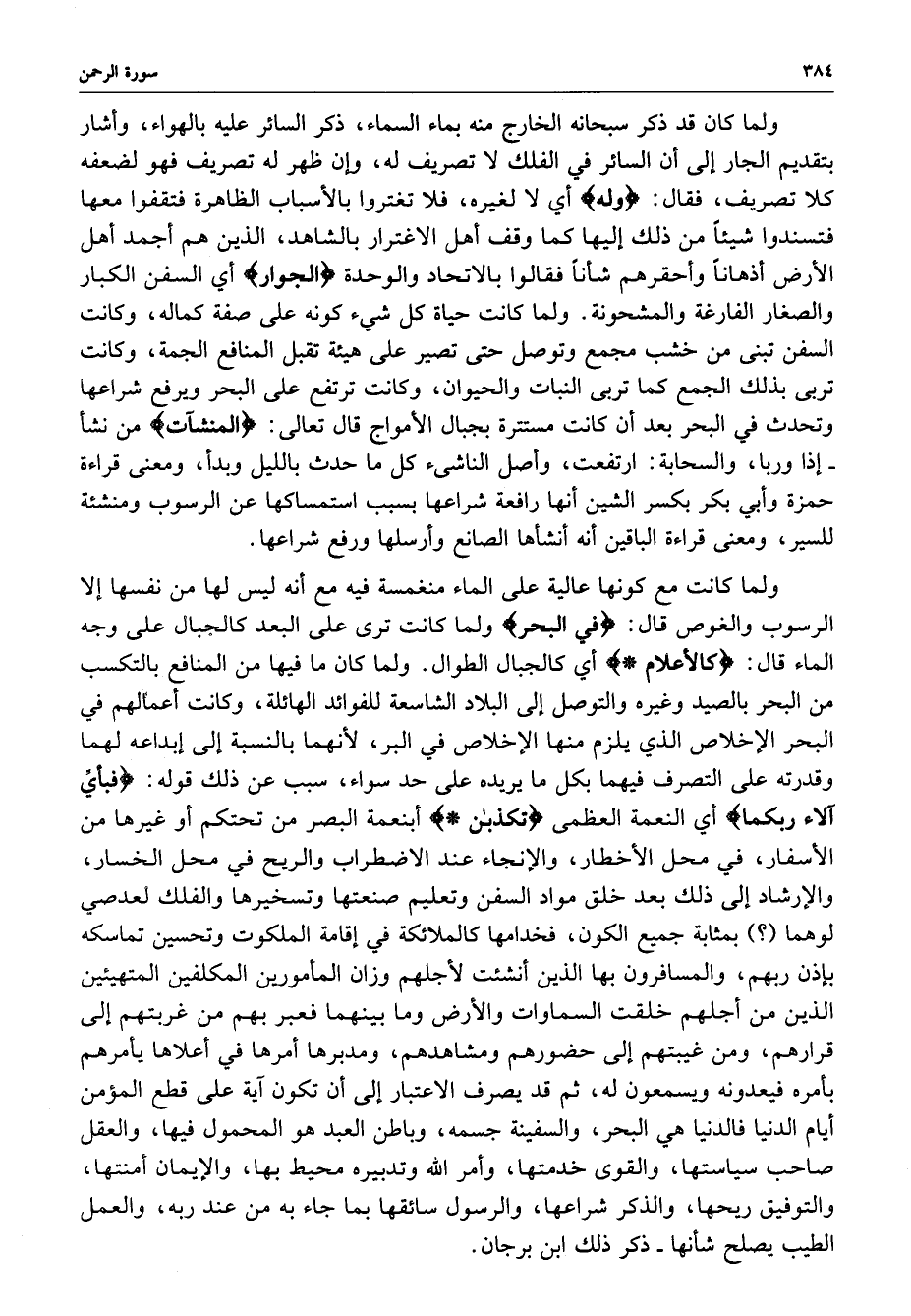 والآية ناظرة بالعطف لجئناهم بعبارات لا يشمون رائحتها ، وبلاغات لا يهتدون أنا ولو شئنا بما لنا من العظمة لجئناهم بعبارات لا يشمون رائحتها ، وبلاغات لا يتهدون إلى وجه معناها أصلاً لكننا لم نفعل ذلك بل خاطبناهم بأبلغ من بلاغتهم مع تيسير فهم ما خاطبناهم به فكان في ذلك إعجازان : أحدهما أنه فوق القرآن العظيم الجامع ترجمة لأفعاله سبحانه في هذا الوجود الشاهد والغائب الذي أخبرنا عنه وشرحنا لما أنزل علينا من أسمائه الحسنى وصفاته العليا التي تعرف لنا بها ، وكان سبحانه قد جعل خلق الآدمي جامعاً ، فما من شيء من أفعاله إلا وفي نفسه منه أثر ظاهر ناظر للتفكر في القرآن والتعرف للأسرار منه بالتذكير الذي يكون. . .