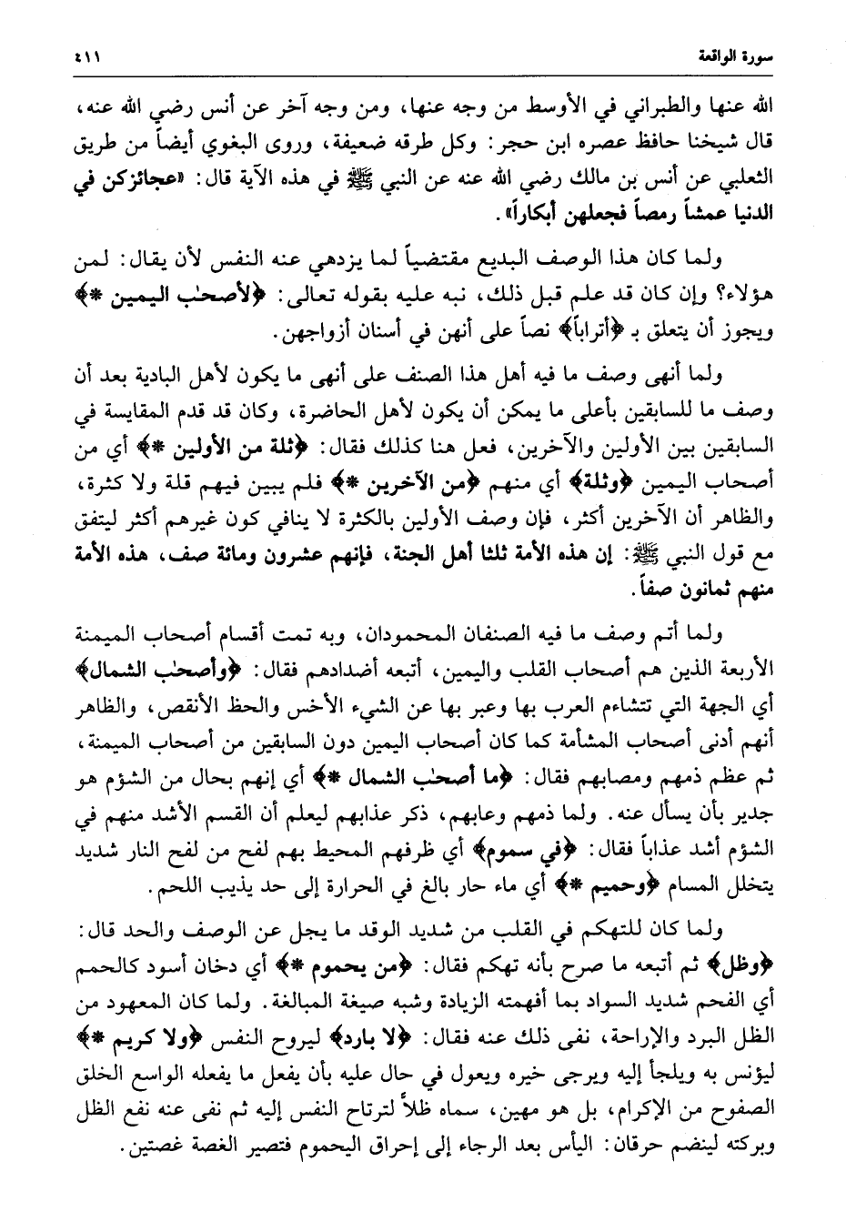 أسقطت ألفها ، فإن في إثباتها وحذفها اختلافاً بين أئمة المصاحف ، وهي إشارة إلى الجهات التي يملك الإنسان التصرف فيها ، أما الحواس فلا اختيار له فيها ، وإن اعتبرت هجاءها بحسب النطق كانت سبعة أحرف إشارة إلى أن النعم أكثر من أن تحصى لما تقدم من أسرار عدد السبعة وإلى أن تكذيب المكلفين متكاثر جداً ، فلذلك كان في غاية المناسبة أن تبسط هذه النعم على عدد ضرب الحواس الخمس في الجهات الست ، وذلك في الحقيقة فائدة ، فإنه من المألوف المعروف والجميل الموصوف أن التكرير عند التكذيب إلى ثمان ذكرت أولاً عقب النعم ، فكانت على عدد السبع الذي هو أول عدد تام لأنه جمع الفرد والزوج وزوج الفرد وزوج الزوج ، وزاد بواحد إشارة إلى أنه كلما انقضى دور من عدد تام جدير لنعم أخرى فهي لا تتناهى لأن موليها له القدرة الشاملة والعلم التام ورحمته سبقت غضبه ، وفي كونها ثمانية إشارة إلى أنها سبب إلى الجنة ذات الألواب الثمانية إن شكرت ، وفي تعقيبها بسبع نارية إشارة إلى أنها سببتها للنار أقرب لكونها حفت بالشهوات ، وفي ذلك إشارة إلى أن من اتقى ما توعد عليه بشكر هذه النعم وقي أبواب النار السبعة ، ثم عقبها بثمانية ذكر فيها جنة المقربين إشارة إلى أن من عمل لما وعده كما أمره به الله نال أبواب الجنة الثمانية ، وثمانية أخرى عقب الجنة أصحاب اليمين إشارة إلى مثل ذلك والله أعلم ، وكان ترتيبها في غاية الحسن ، ذكرت النعم أولاً استعطافاً وترغيباً في الشكر ثم الأهوال ترهيباً ودرأ للمفسدة بالعصيان والكفر ثم النعم الباقية لجلب المصالح ، وبدأ بأشرفها فذكر الجنة العليا لأن القلب إثر التخويف يكون أنشط والهمم تكون أعلى والعزم يكون أشد ، فحينئذ هذه الآية الأولى من الإحدى والثلاثين مشيرة إلى أن نعمة البصر من جهة الأمام ، فكأنه قيل : أبنعمة البصر مما يواجهكم أو غيرها تكذبان .
