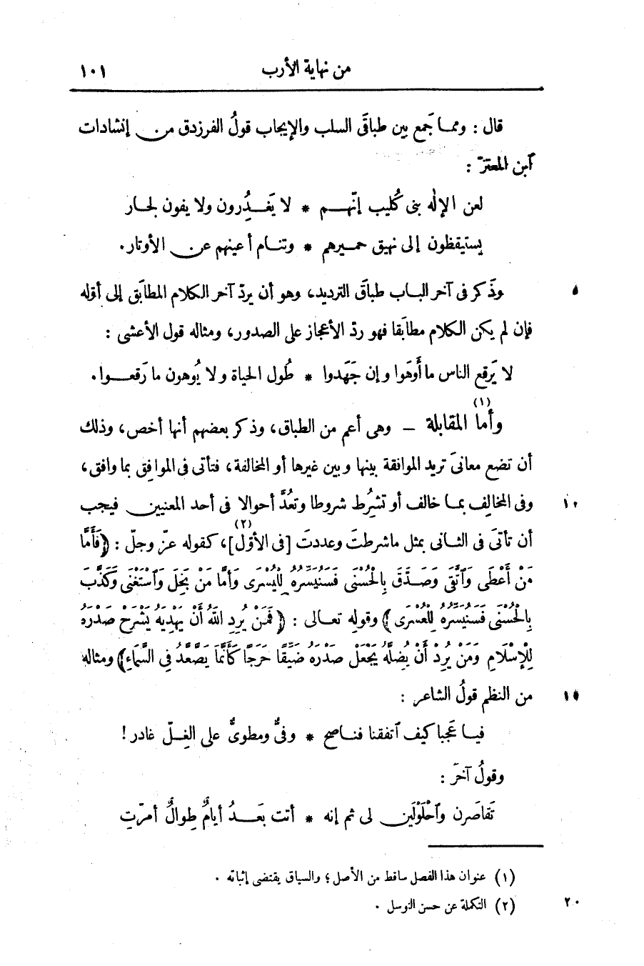 قال: ومما جمع بين طباقى السلب والإيجاب قول الفرزدق من إنشادات ابن المعتزّ: