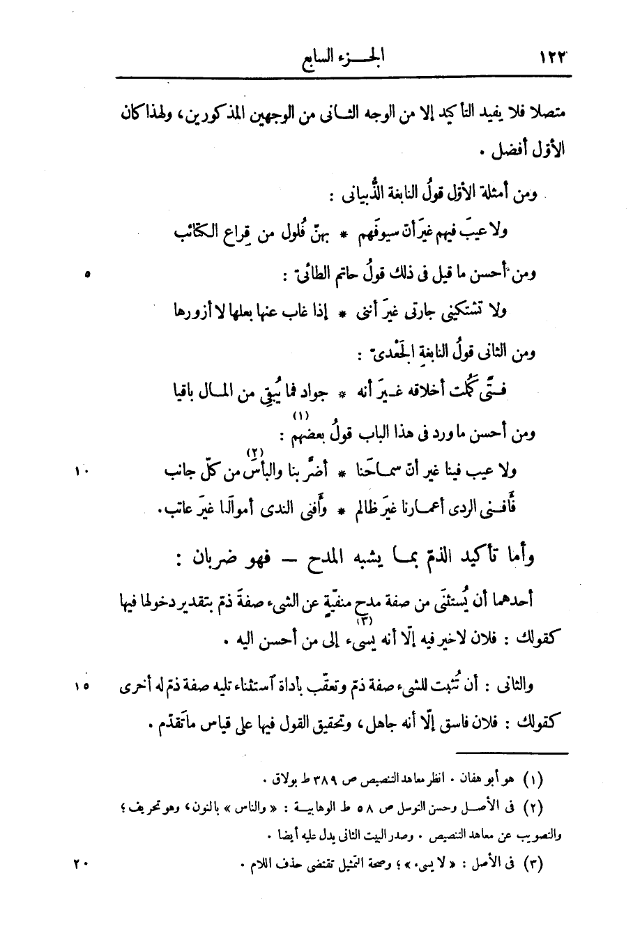 ومن أمثلة الأوّل قول النابغة الذّبيانى: