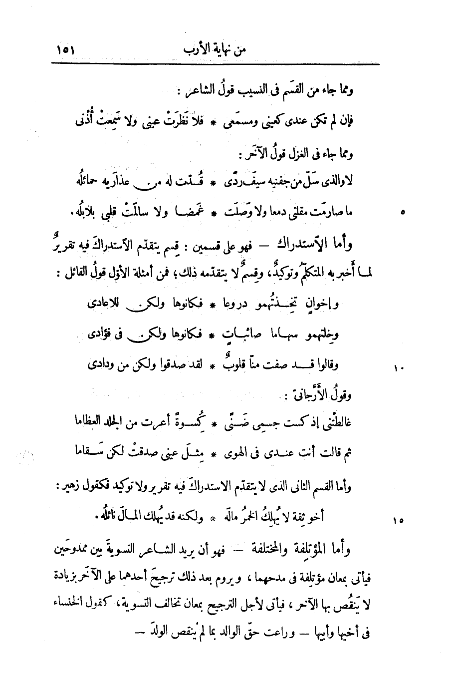 - فهو أن يريد الشاعر التسوية بين ممدوحين فيأتى بمعان مؤتلفة فى مدحهما، ويروم بعد ذلك ترجيح أحدهما على الآخر بزيادة لا ينقص بها الآخر، فيأتى لأجل الترجيح بمعان تخالف التسوية، كقول الخنساء فى أخيها وأبيها- وراعت حقّ الوالد بما لم ينقص الولد-