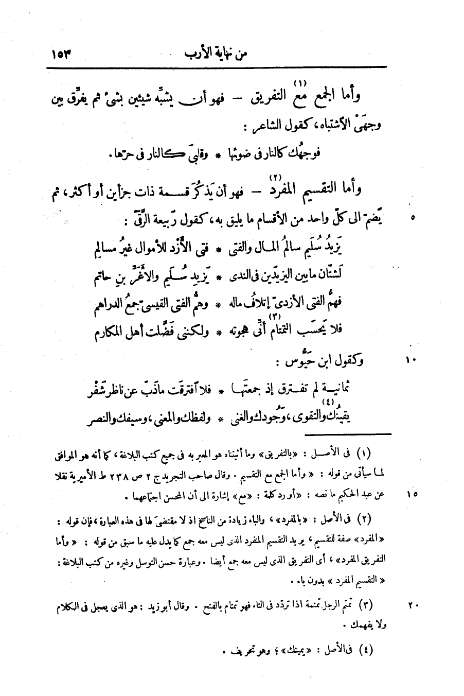 - فهو أن يذكر قسمة ذات جز أين أو أكثر، ثم يضمّ الى كلّ واحد من الأقسام ما يليق به، كقول ربيعة الرّقىّ: