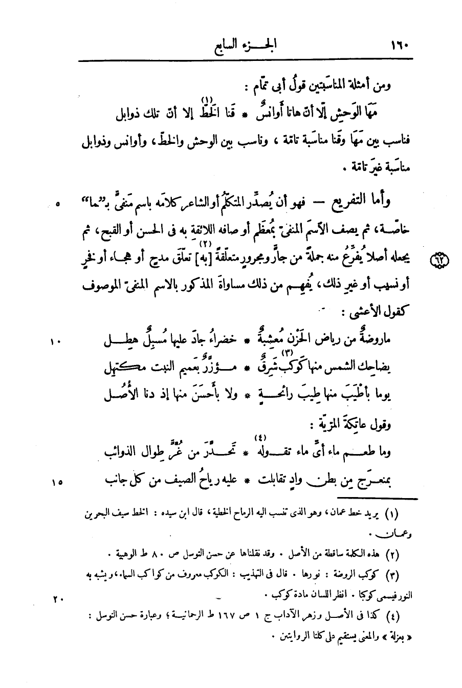 ومن أمثلة المناسبتين قول أبى تمّام: