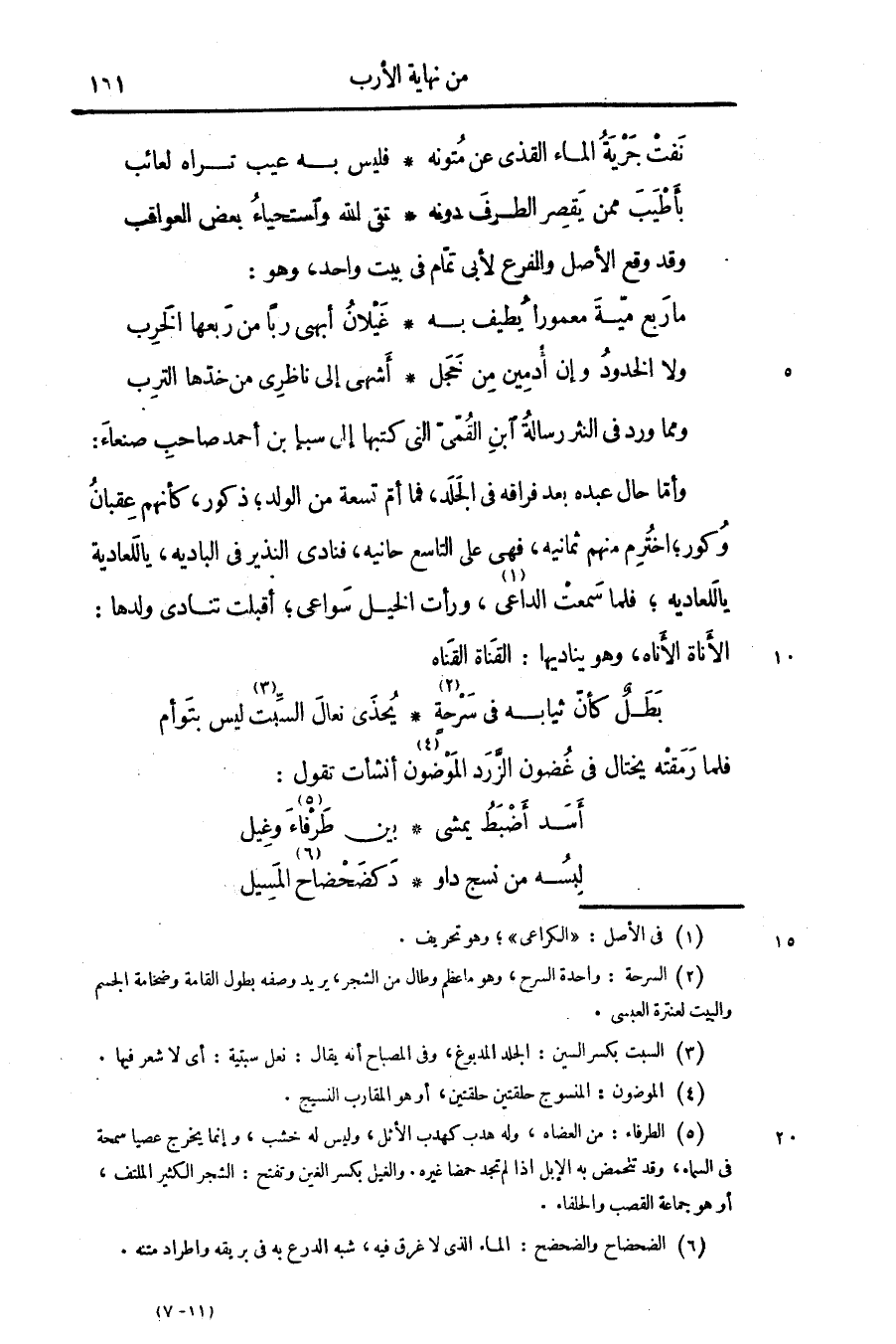 وأمّا حال عبده بعد فراقه فى الجلد، فما أمّ تسعة من الولد؛ ذكور، كأنهم عقبان وكور؛ اخترم منهم ثمانيه، فهى على التاسع حانيه، فنادى النذير فى البادية، ياللعادية ياللعادية؛ فلما سمعت الداعى «1» ، ورأت الخيل سواعى؛ أقبلت تنادى ولدها: