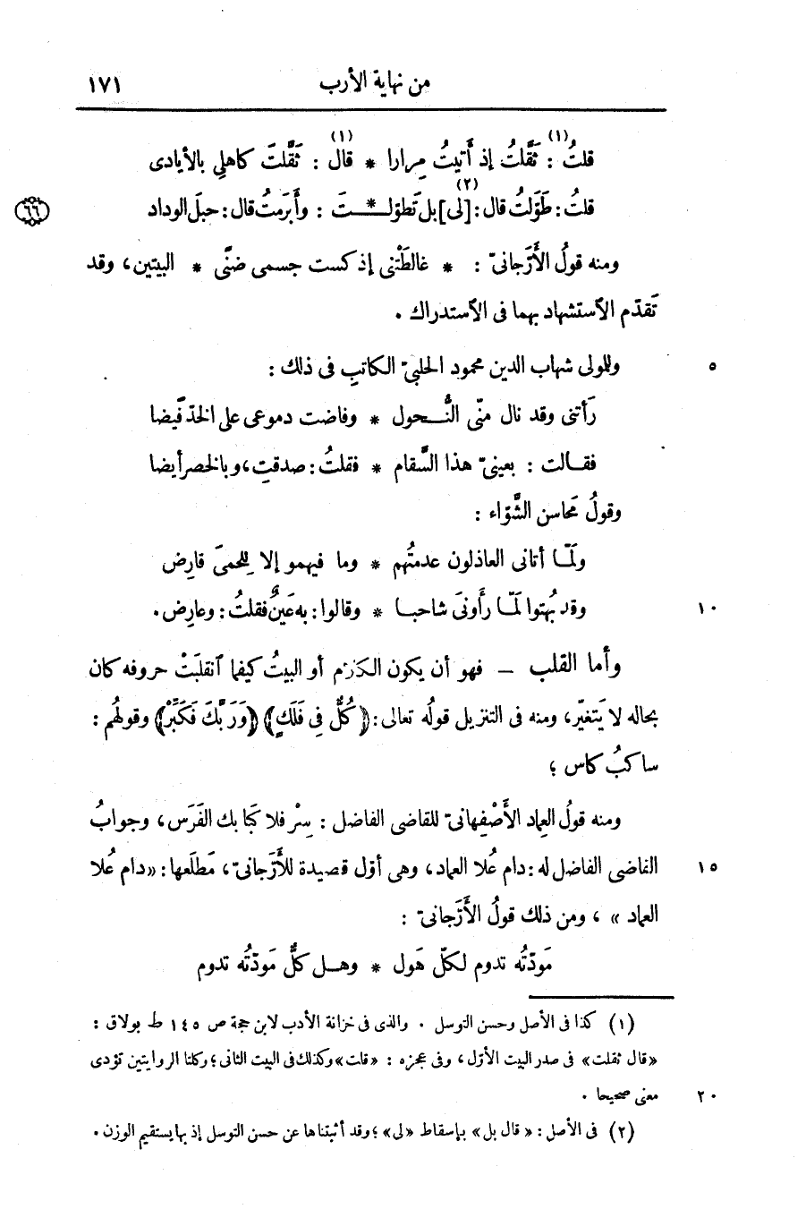 وللمولى شهاب الدين محمود الحلبىّ الكاتب فى ذلك: